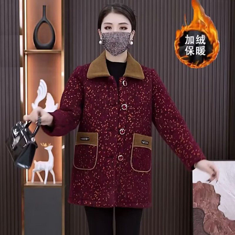 中年のお母さんの秋冬服の中の長いタイプのファッション的な洋風のコートの新型の中高年の女性は格子の襟を着ます。