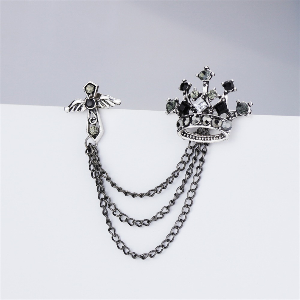 韓国版レトロ高級英倫クラウン流蘇クロスブローチ男性バッジ洋服アクセサリー