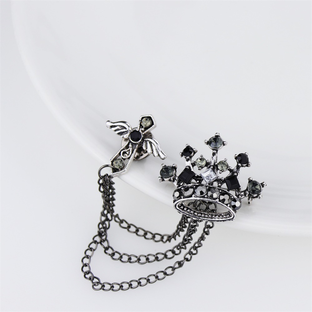 韓国版ファッション天使翼流蘇皇冠男性ブローチ高級英倫スーツアクセサリー胸花女性ピン