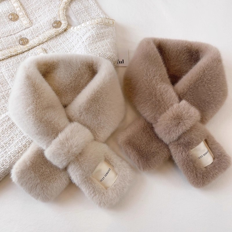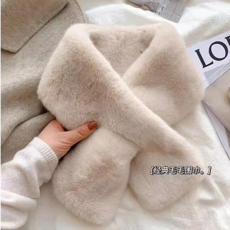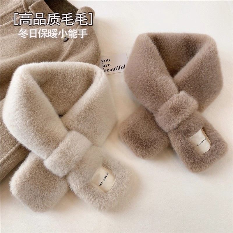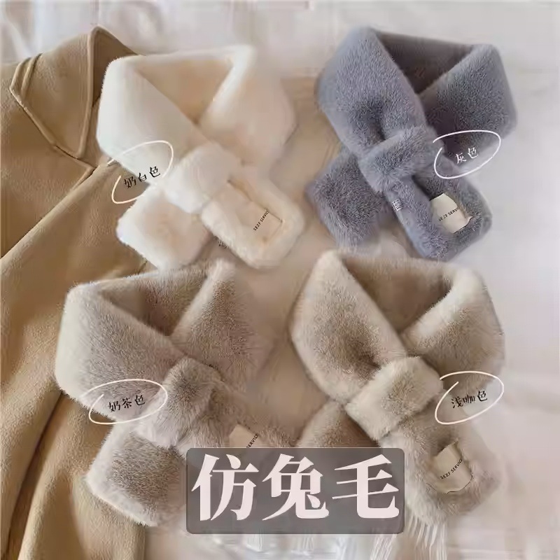 冬季新款围巾女仿兔毛百搭保暖毛绒短围脖加厚交叉护颈防风脖套