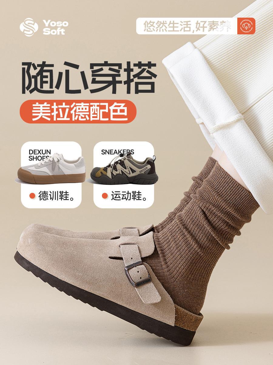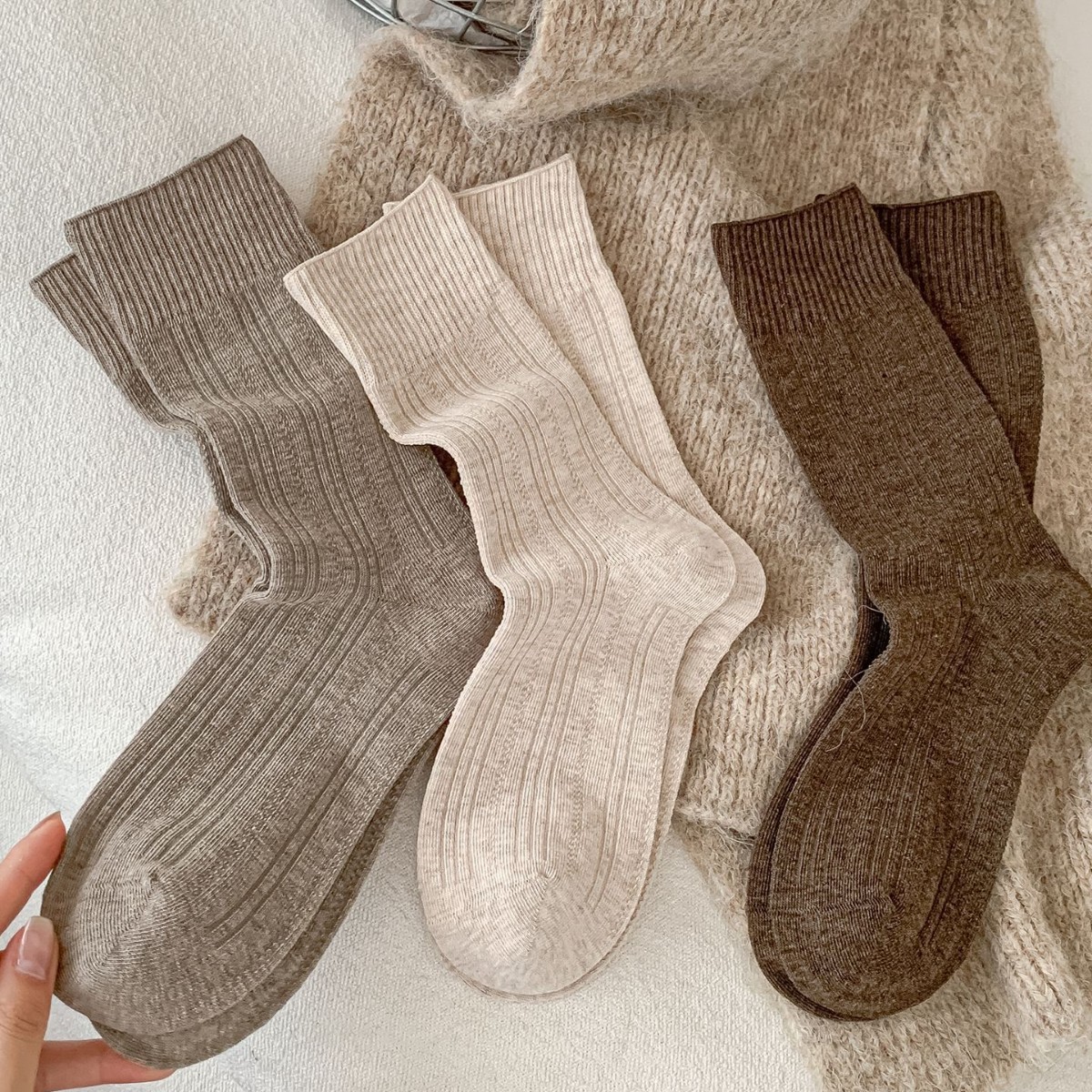 复古咖色袜子秋冬外穿ins韩系燕麦色堆堆纯棉琥珀流光风穿搭miu系