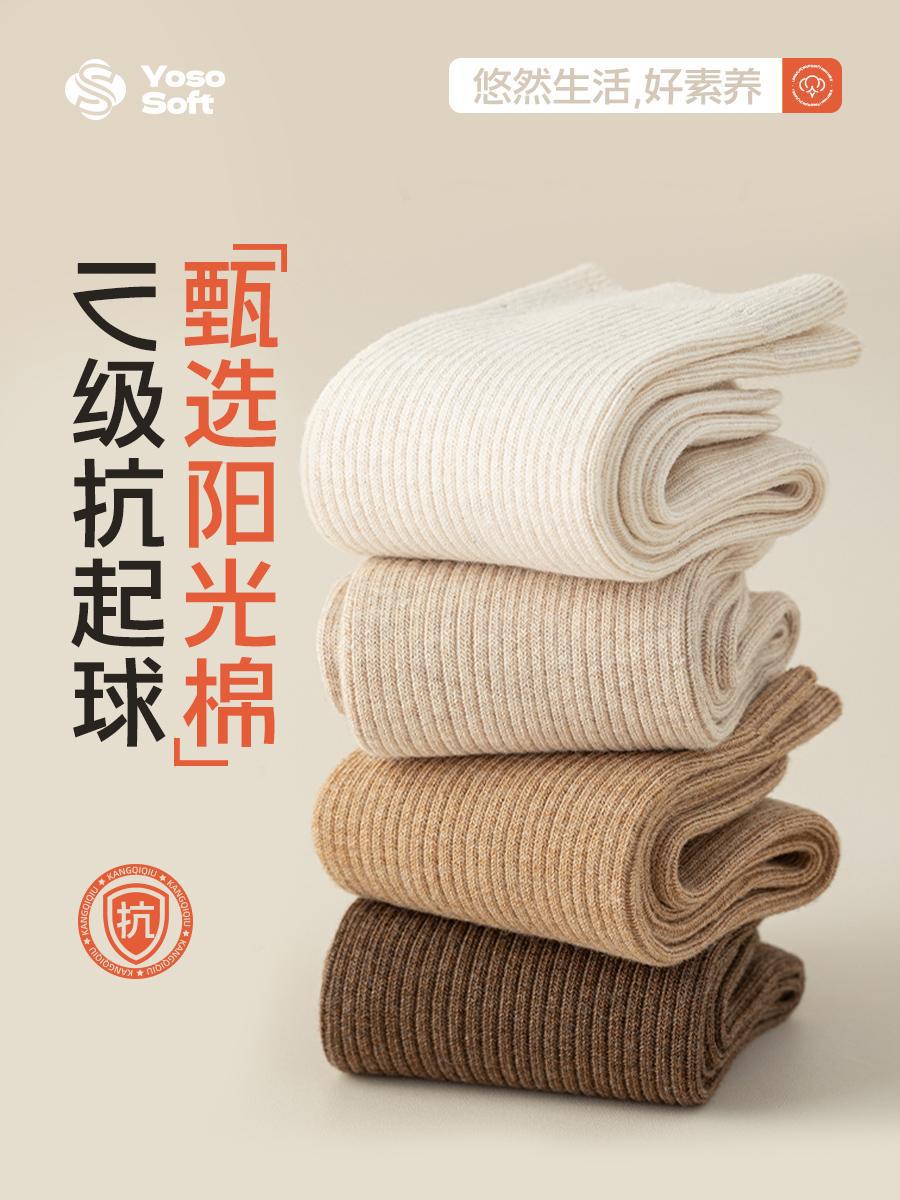 抗ピリングパイルソックス レディース 春秋 ミドル丈ソックス 綿 吸汗消臭 学生靴下 ゆったり口閉じ込めソックス