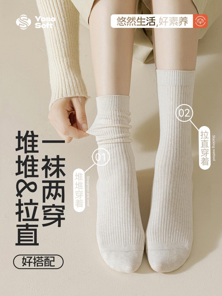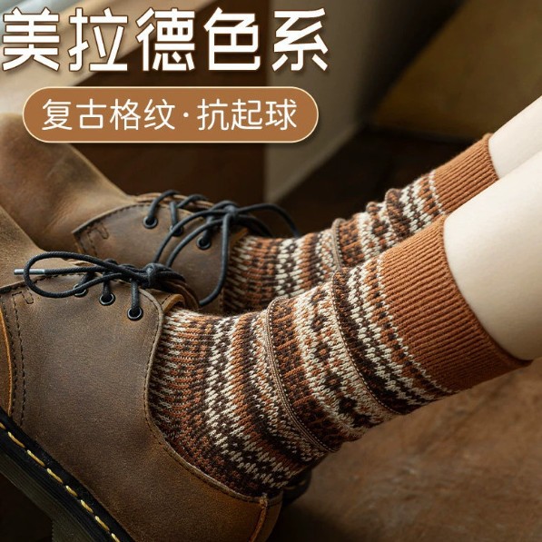袜子女2025新款爆款双针双路女民族风长袜女中筒袜秋冬保暖女棉袜