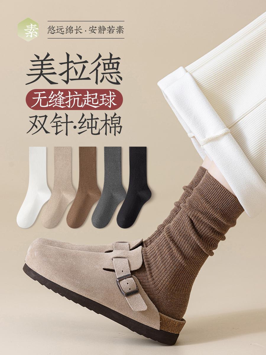 美拉德袜子女秋冬中筒袜棉秋款厚棕色堆堆袜女黑色中筒袜ins潮