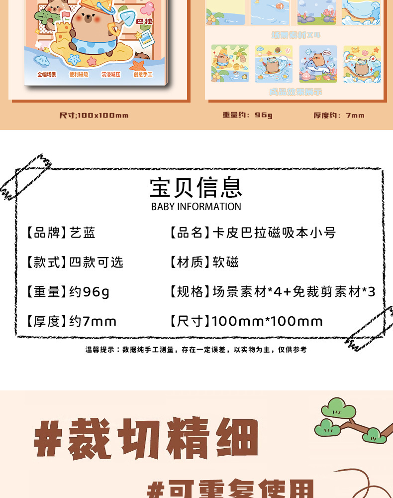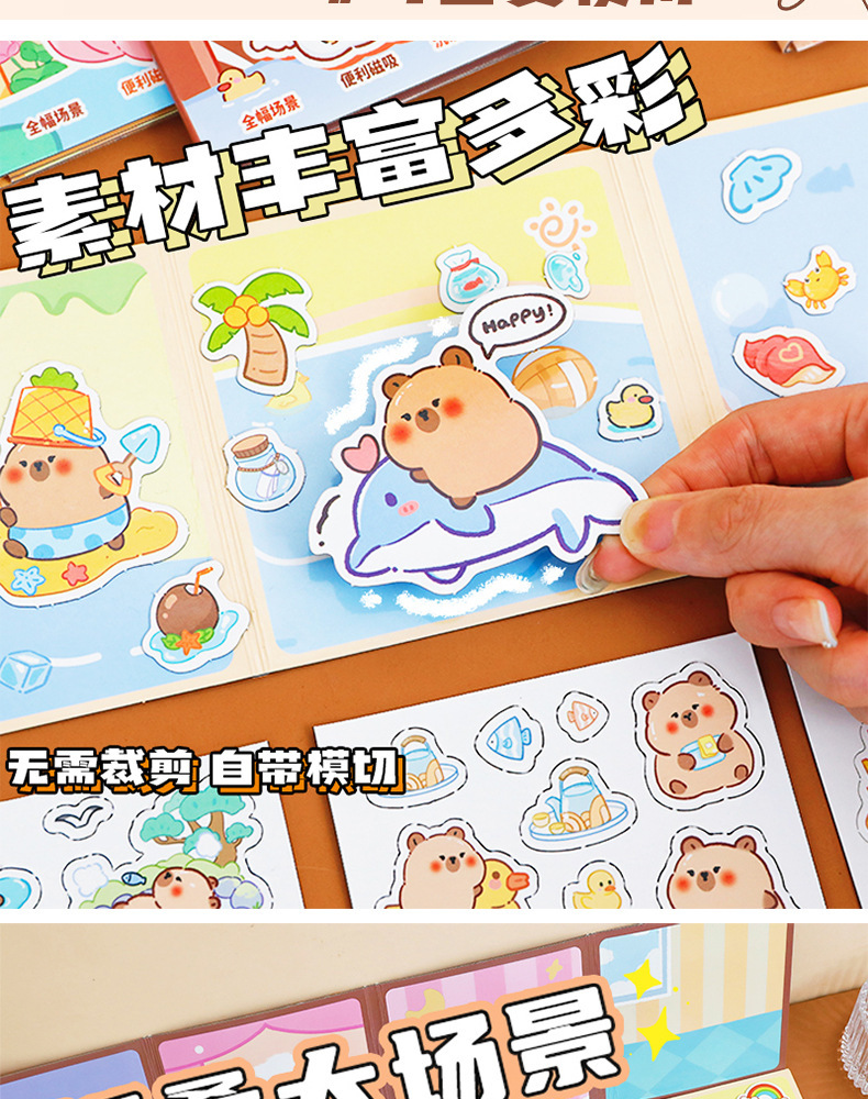 磁気静音ブック かわいいカピバラ 無切断 子供向け手作りDIY装飾 磁気ステッカー ギフト 文房具