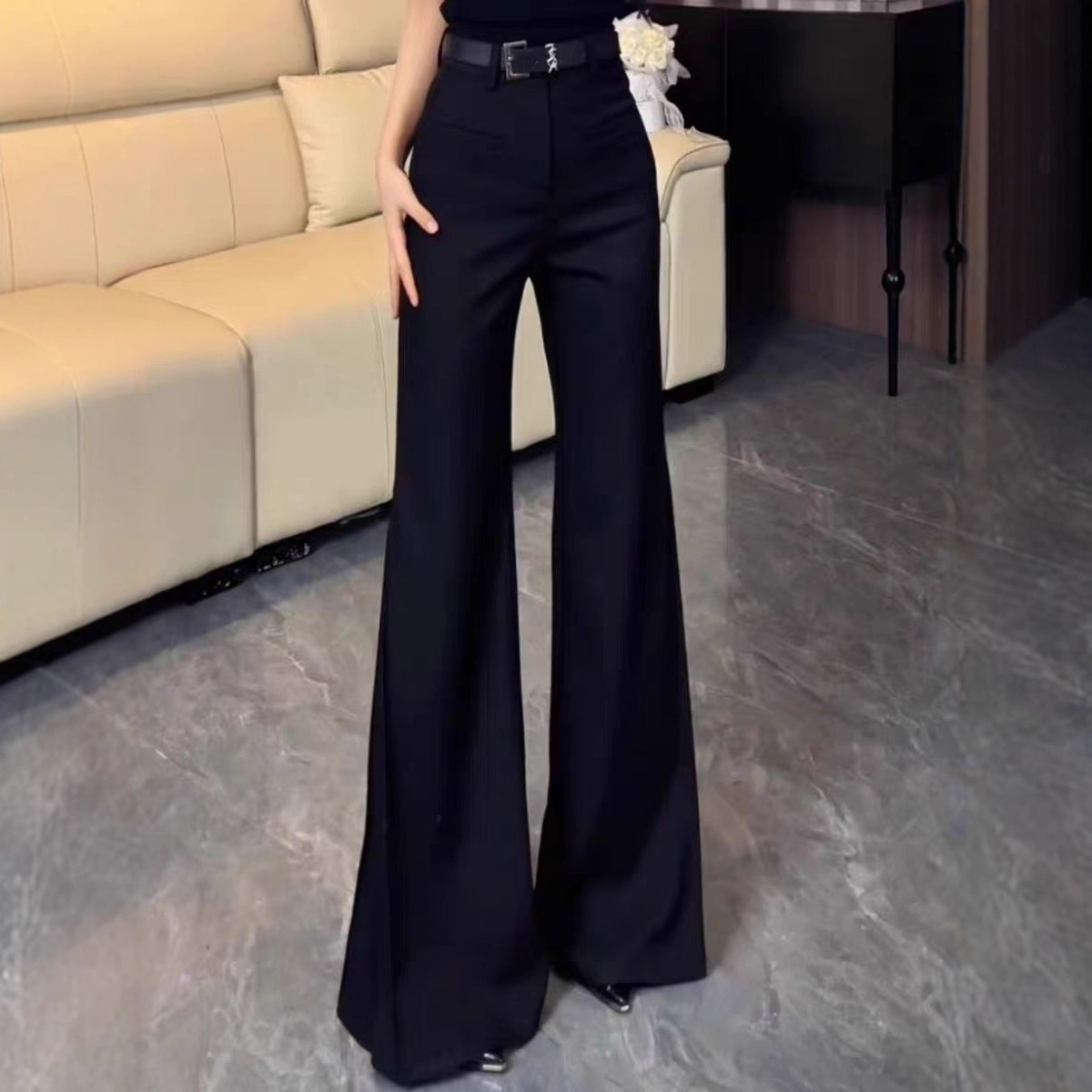 黑色微喇叭休闲西装裤女2025秋季新款高腰修身显瘦百搭垂感拖地裤