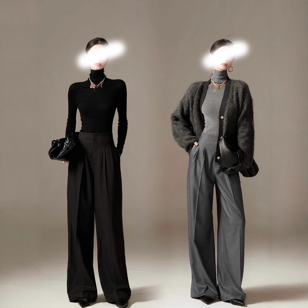 ズボンの形がいいですね。また垂れて颯爽〜高级感ワイドパンツレディースハイウエスト垂れ感ストレート通勤スーツパンツ秋