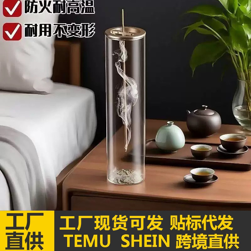 【跨境热销】倒挂香炉架带玻璃杯香灰收集器瑜伽冥想线香香插底座