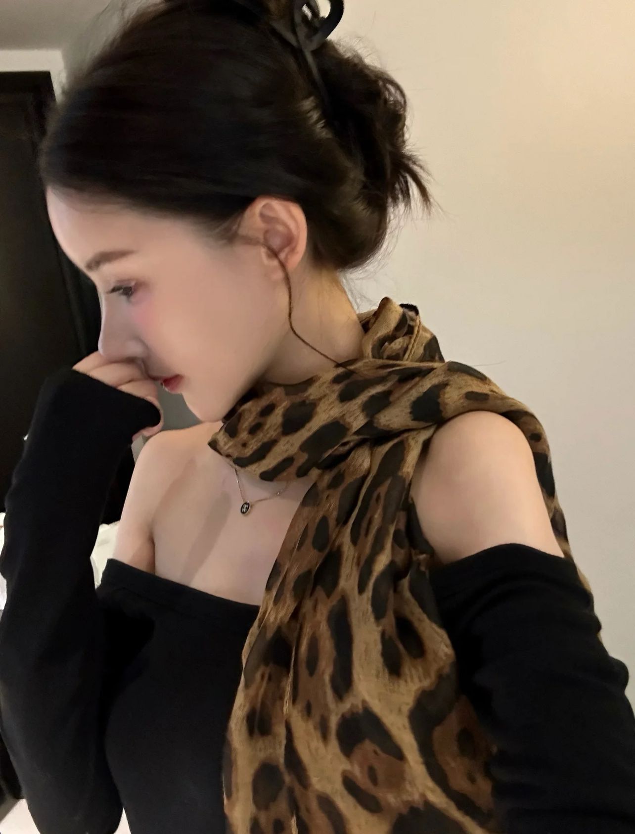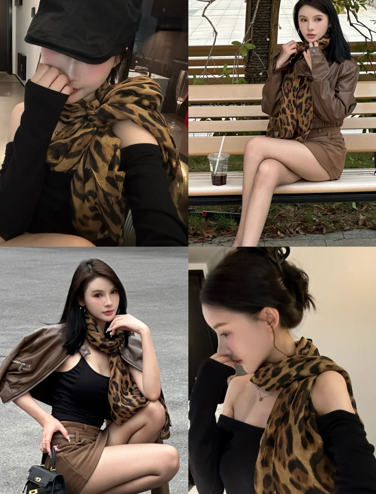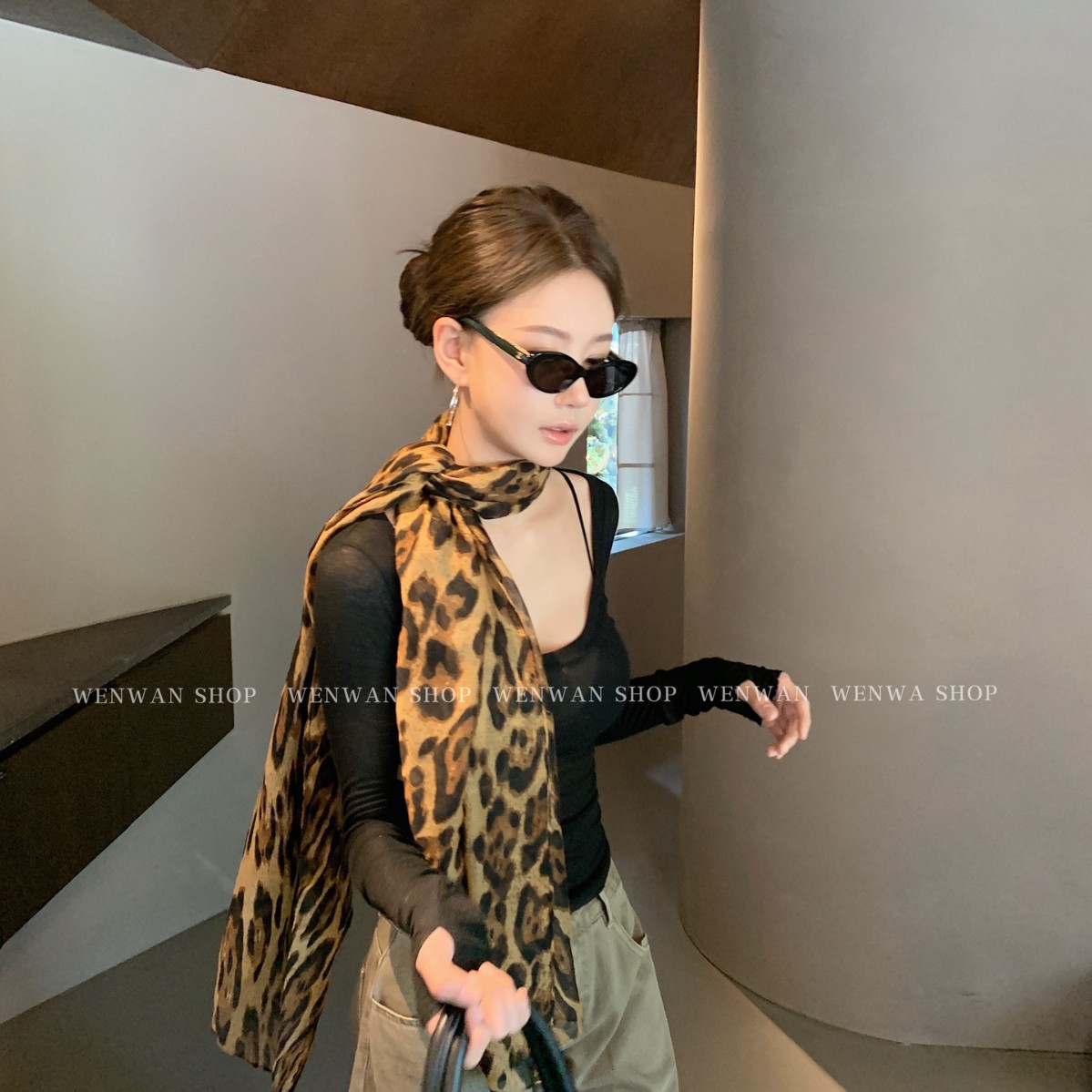 WENWAN渋谷ギャルミレニアム风ヒョウ柄シルクスカーフギャル风スカーフベルト雰囲気感ストール