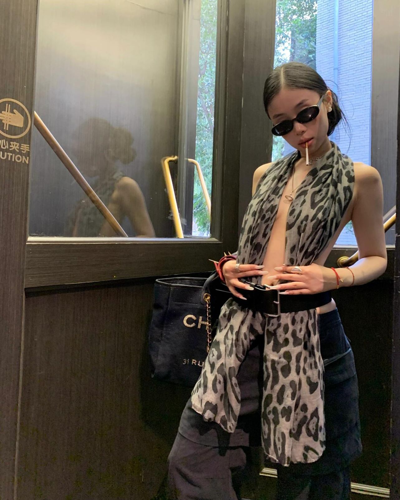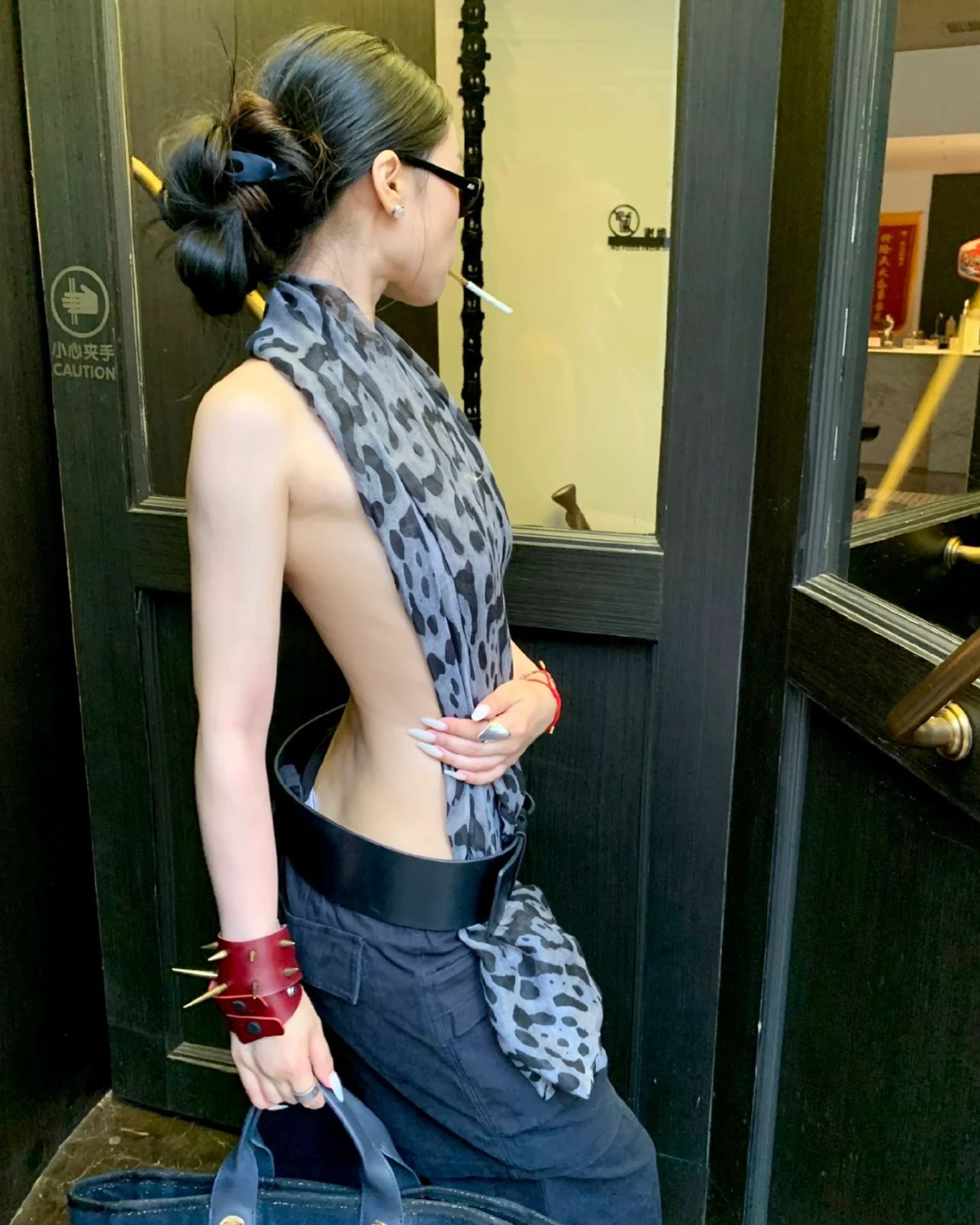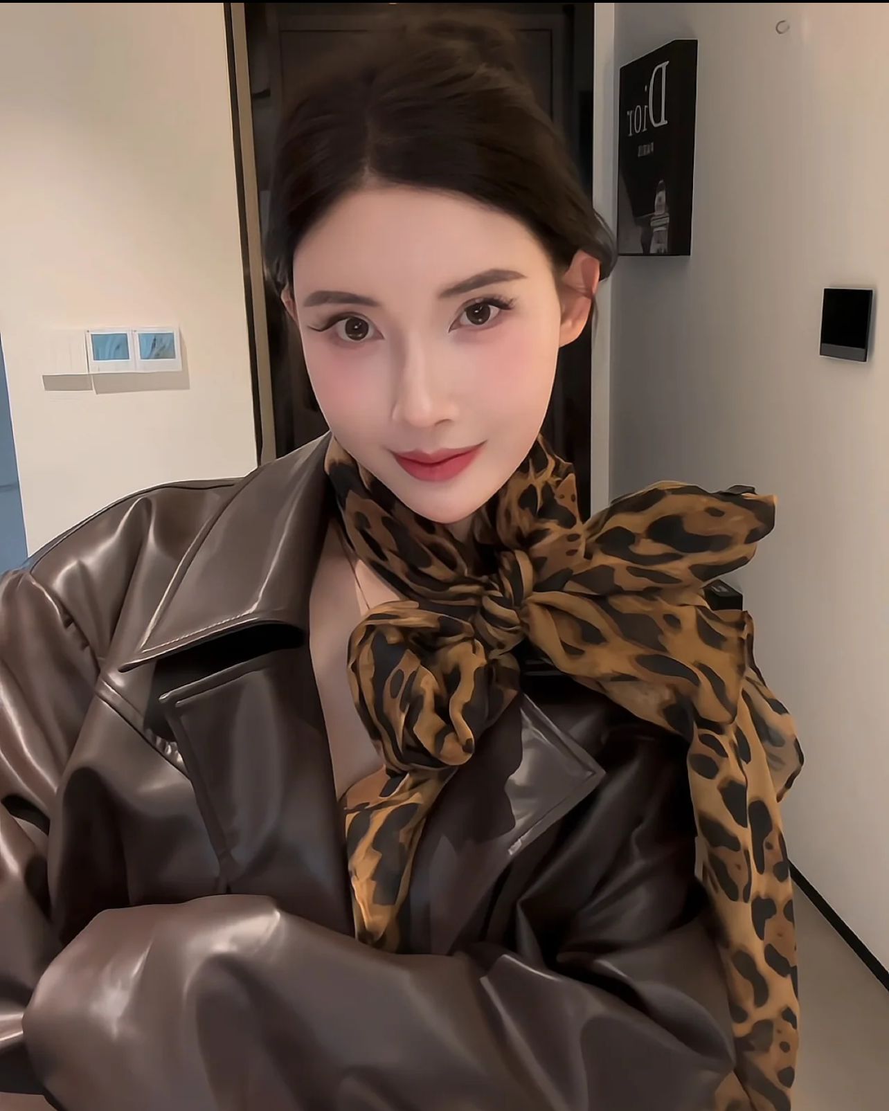 WENWAN渋谷ギャルミレニアム风ヒョウ柄シルクスカーフギャル风スカーフベルト雰囲気感ストール