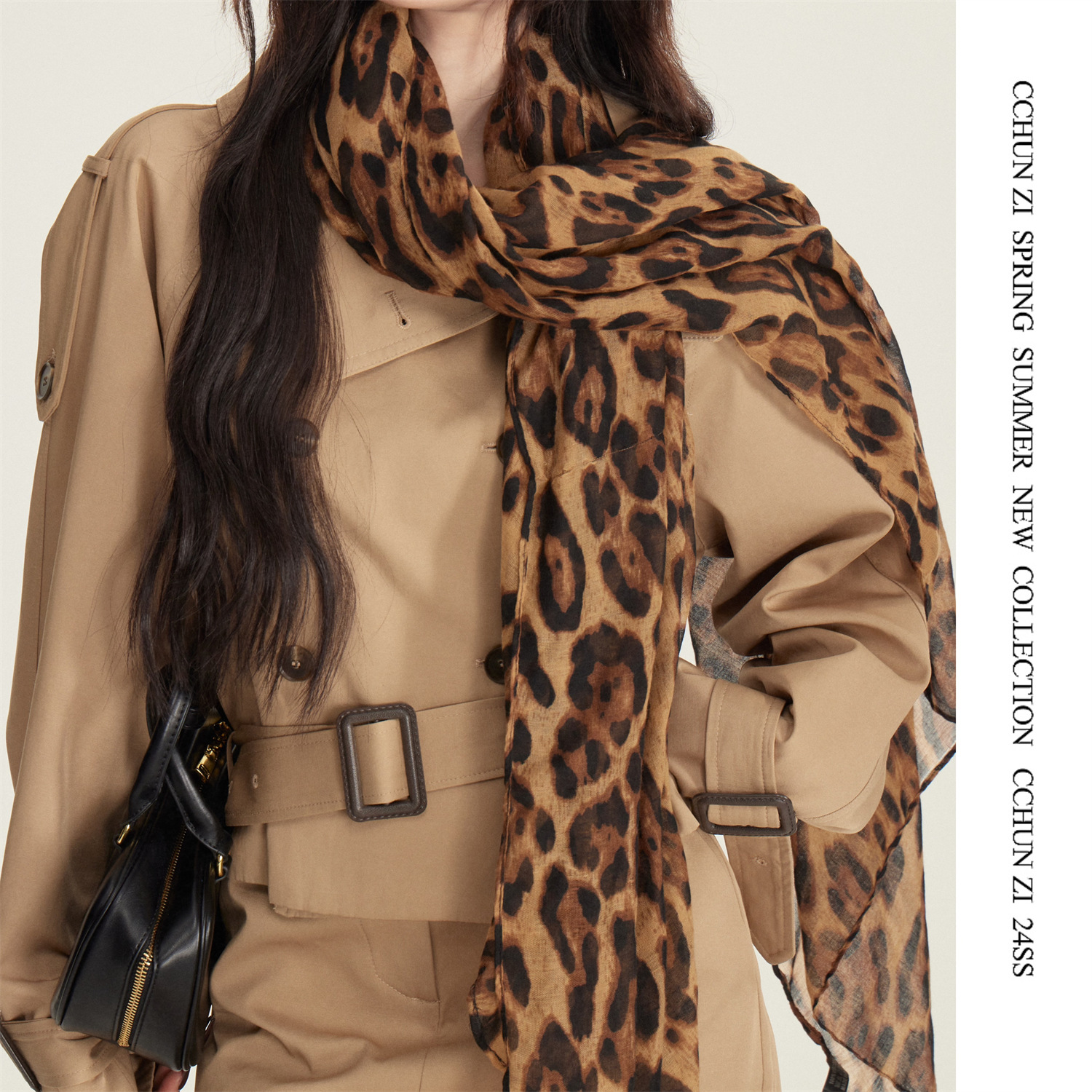 【CHUN ZI】千年風レトロ豹紋シルクタオル女性薄いプリントギャルマフラーファッション香港風ストール
