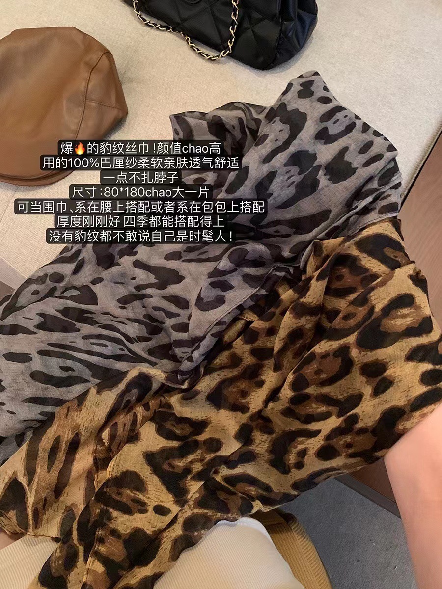 纯欲风美式复古辣妹风豹纹围巾女高级感长条丝巾纱巾薄款领巾围脖