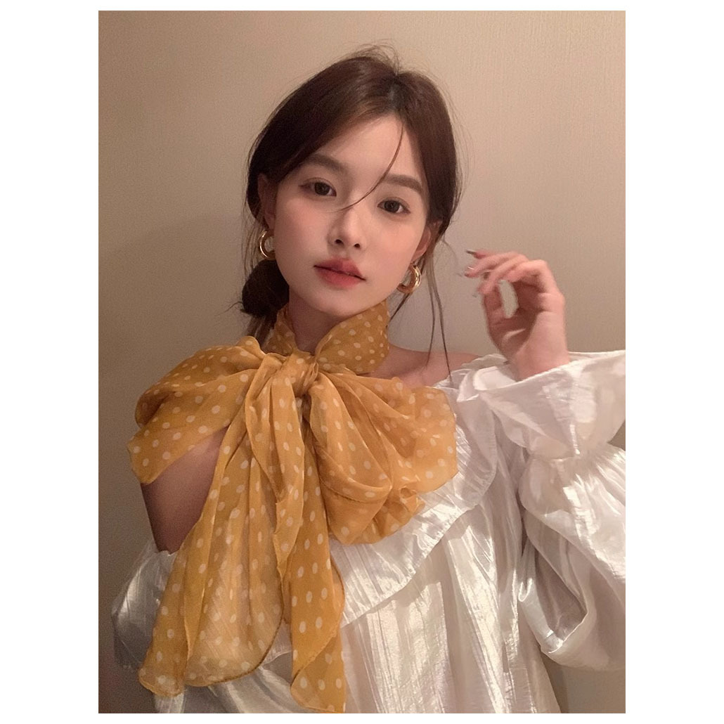 東南アジア風情 ~ 波点シルクタオル女2025春夏新作は首の高級感の長い首のシルクタオルと組み合わせます。