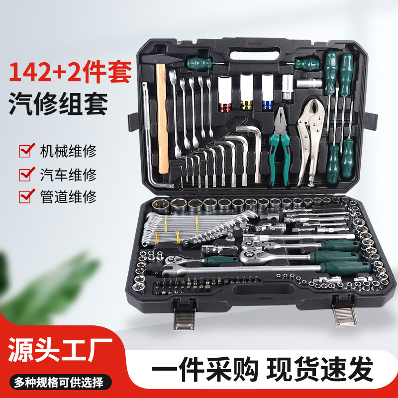 卸売り142 2セット家庭用工具セット多機能自動車修理金物工具箱セット