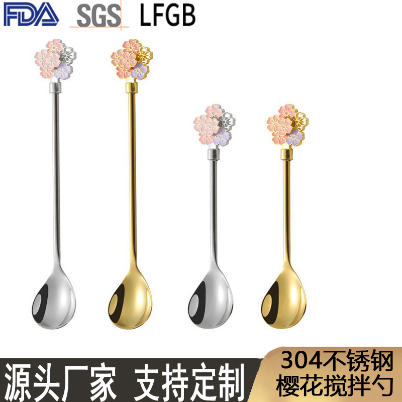 跨境304不锈钢樱花勺甜品小勺子咖啡勺高颜值燕窝长柄搅拌勺