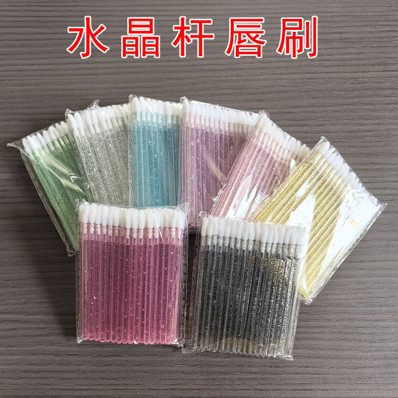 跨境50支水晶杆实心唇刷棉签棒唇釉晕染刷化妆工具便捷口红刷批发