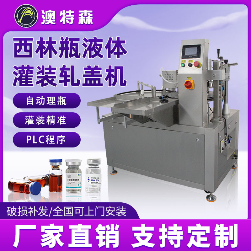 全自动西林瓶灌装轧盖机一体液体口服液精油试剂安培瓶定量封口机
