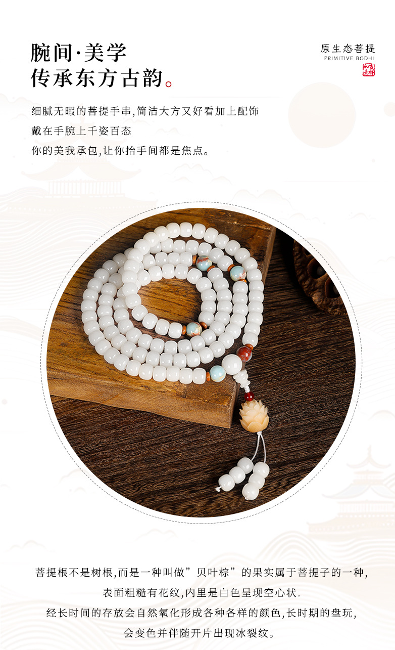 天然白玉菩提根手串108個の仏珠蓮花菩提子ブレスレット