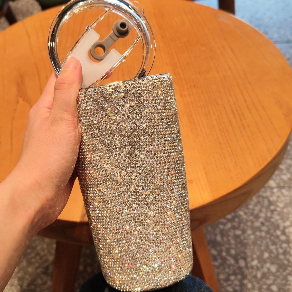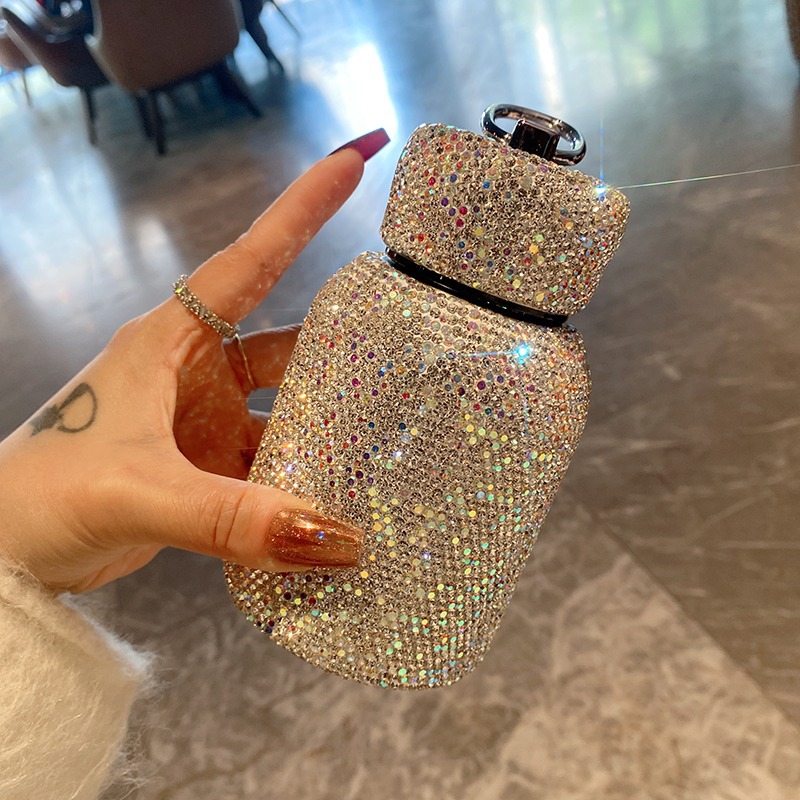 ミニ断熱カップ、ダイヤモンド付き304ステンレス製ウォーターカップ、女性向け、越境人気商品、自社直販、ダイヤモンド付きカップ、カスタムギフト