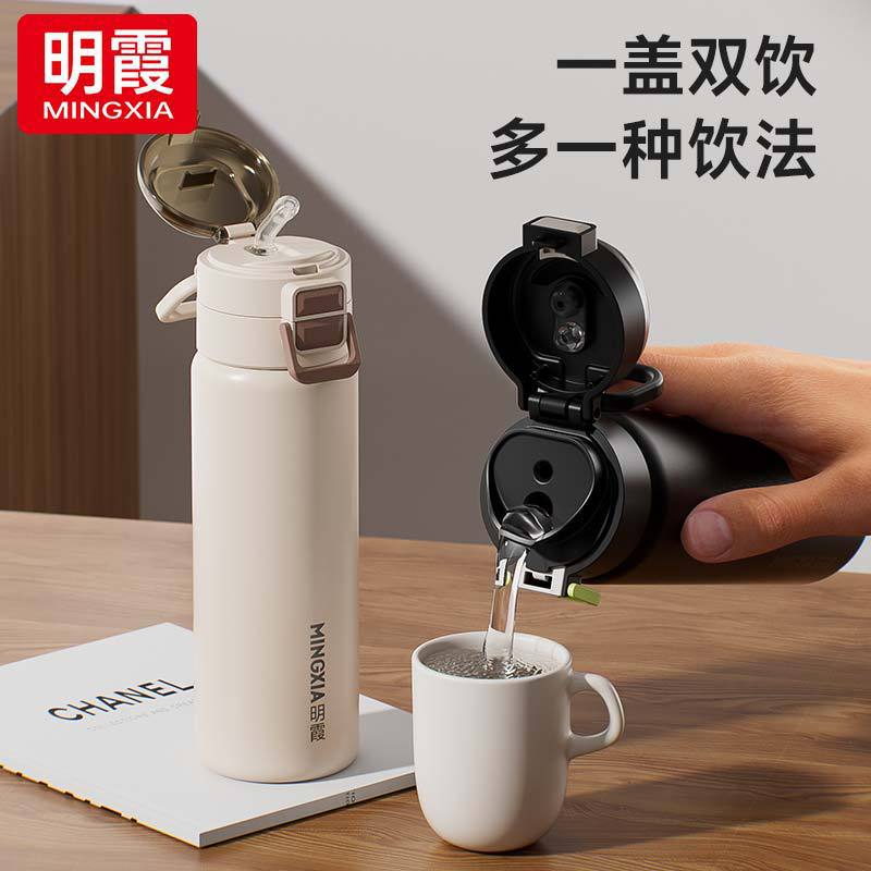 明霞保温杯印字高颜值学生水杯便携吸管杯商务办公不锈钢杯子批发
