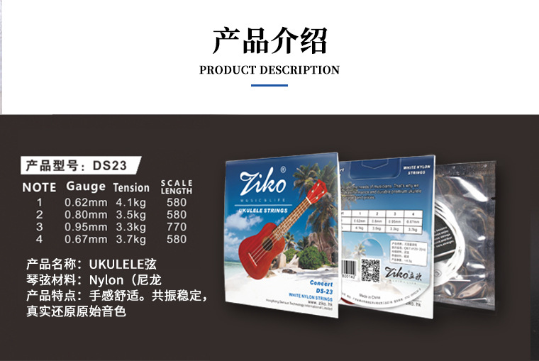 ZIKO立欧DS-23UK1-4弦セット弦輸入PA純ナイロン引張圧力ウクレレ通用