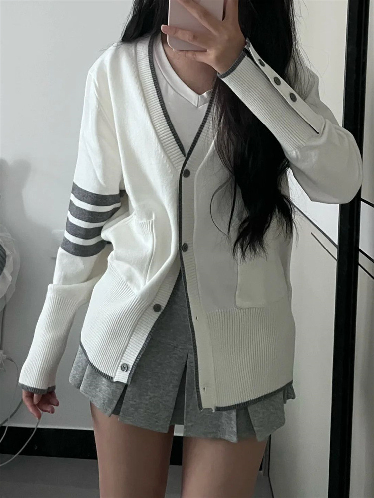 繊細なルーズカジュアルカーディガン女性カレッジスタイルアウターミルクホワイトスリーバー V ネックニットファッションセーター