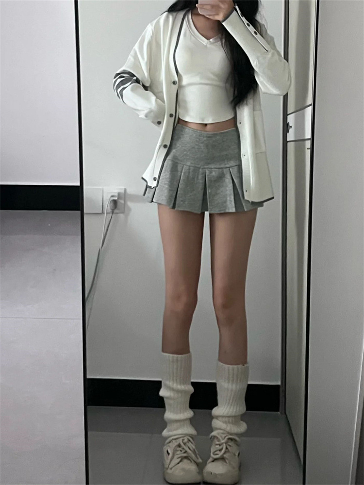 セクシーな百合の灰色の低い腰のa字のミニスカートの女性の秋の高い腰は股を遮って光の運動の百タックの半身のスカートを遮ります。