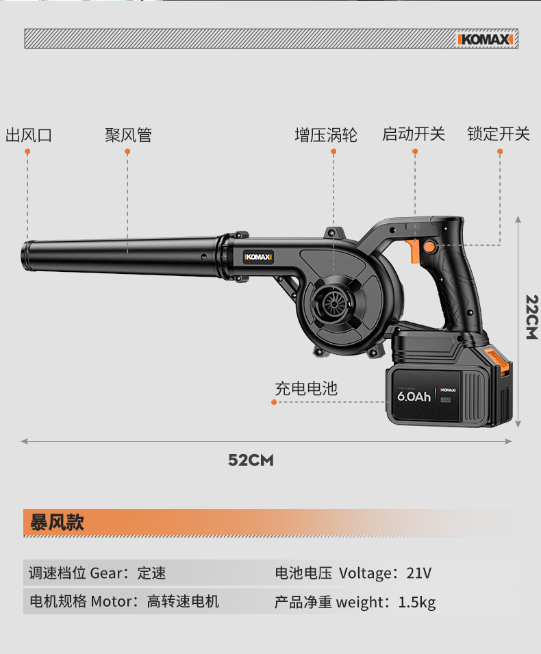 新型大口径含道暴風機ブラシレスリチウム電気ドライヤー車載灰吹雪吹雪屋外吹葉機