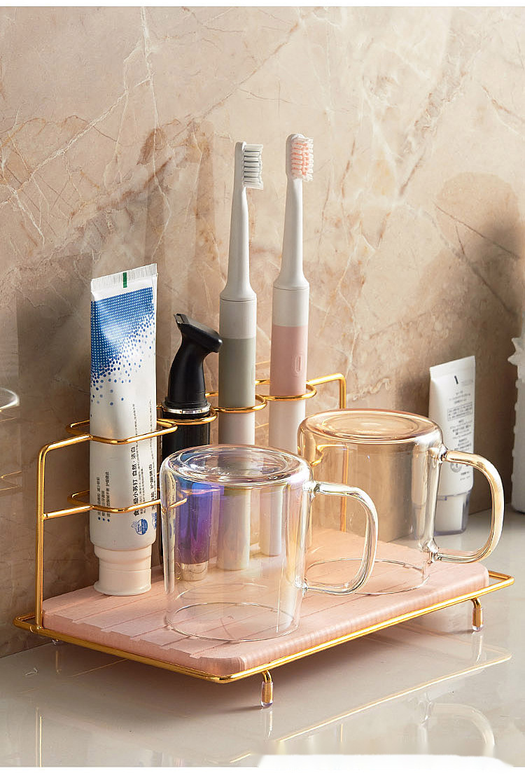 珪藻泥トイレ浴室台化粧品収納手洗い洗面台物置棚回転角電動歯ブラシホルダー