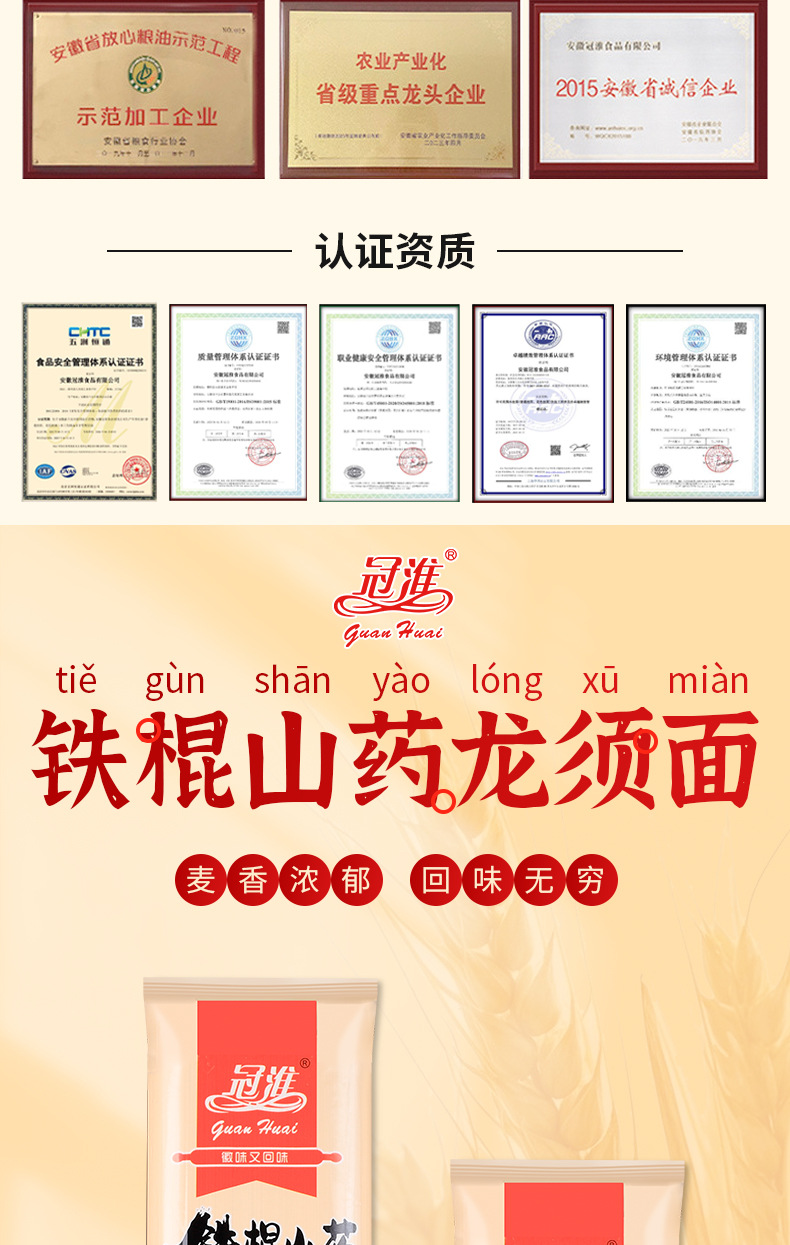 冠淮鉄棍山芋龍鬚麺500g細麺炒め麺陽春麺湯麺混ぜ麺箱売り