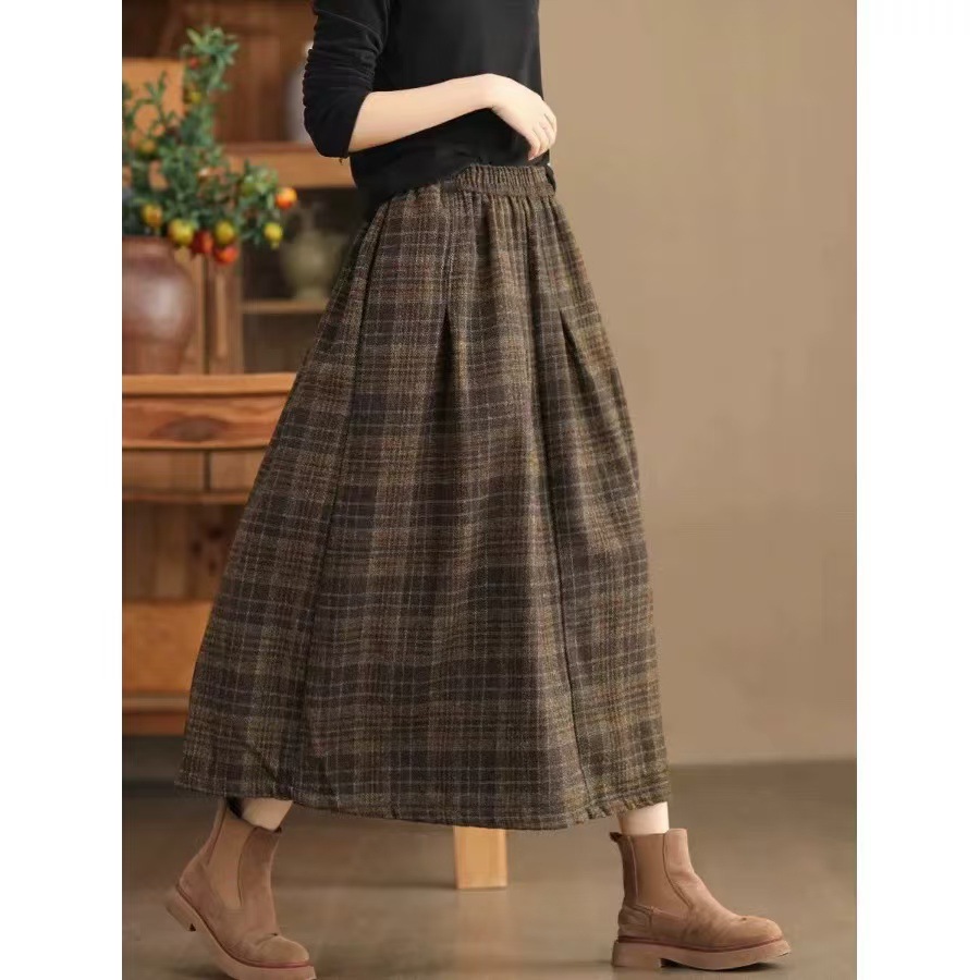 24年秋冬ラシャ格子スカート女性ゆったりカジュアル韓国版学院風スカートミディアムスカートA版