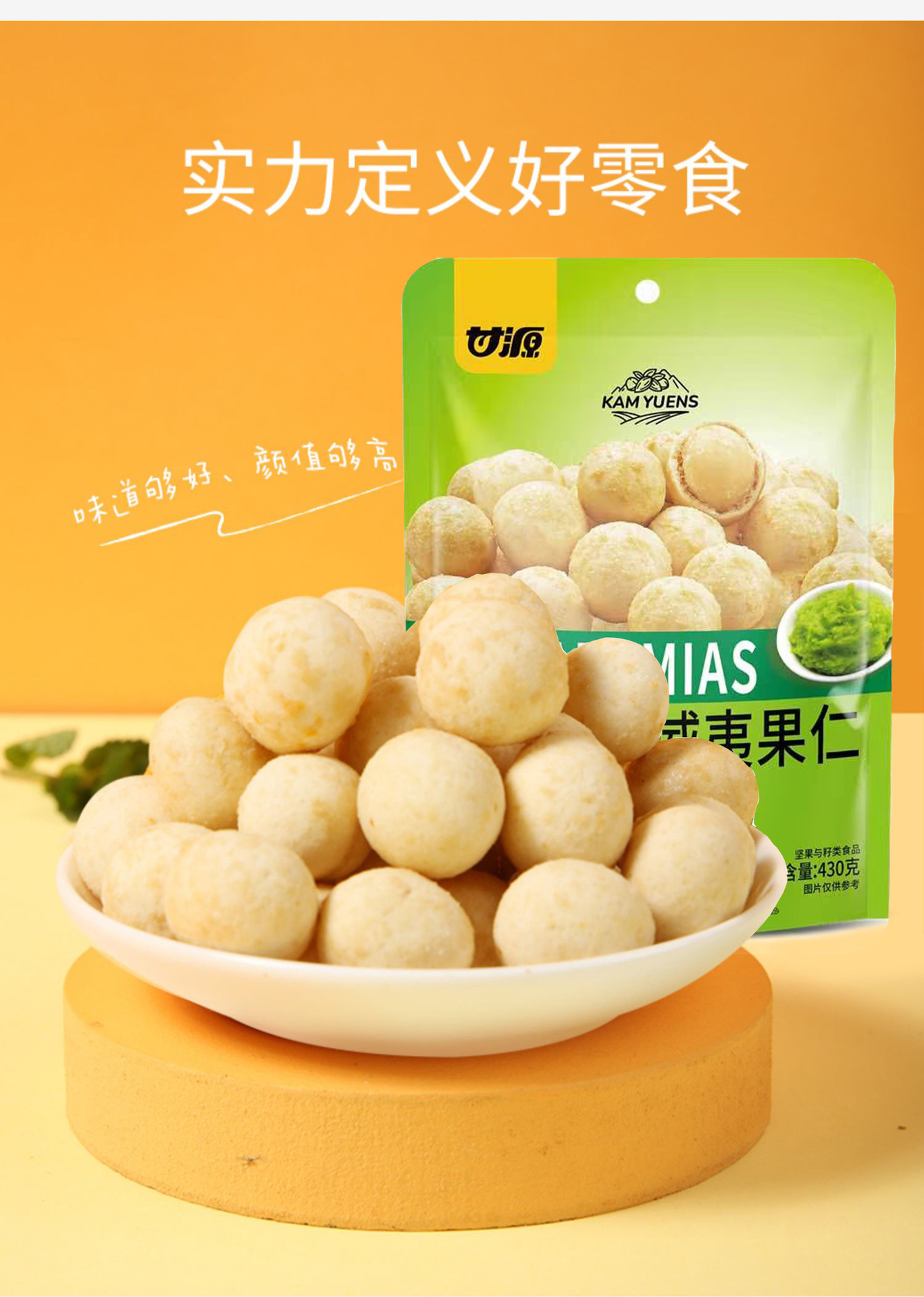 甘源DF系列495G芥末味夏威夷果仁组合夏果去壳补充坚果办公室零食