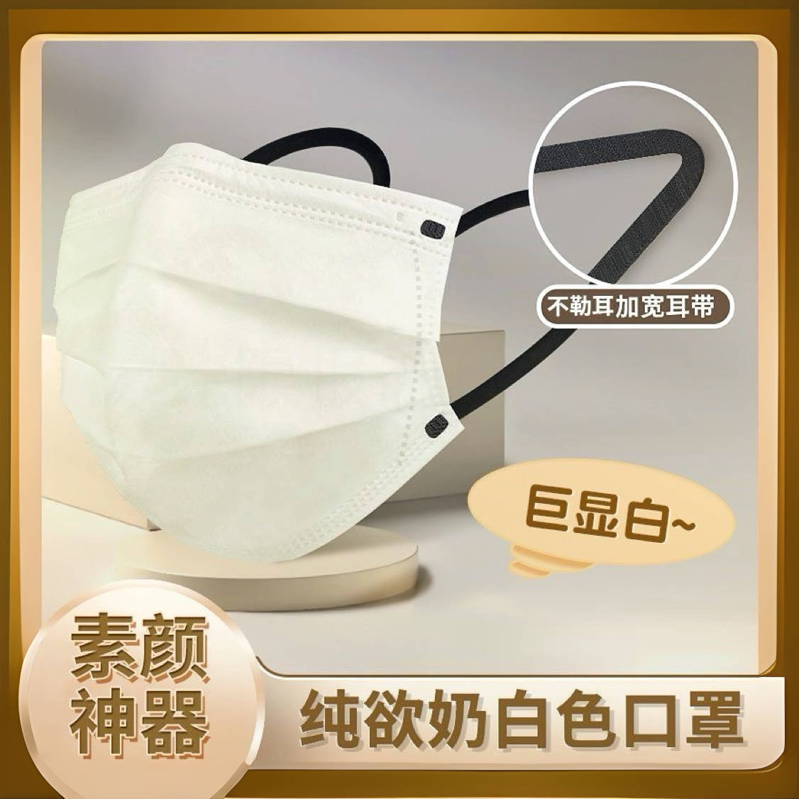 クリーム風白色マスク高颜値使い捨てins風マスク白独立包装衝突色装飾マスク