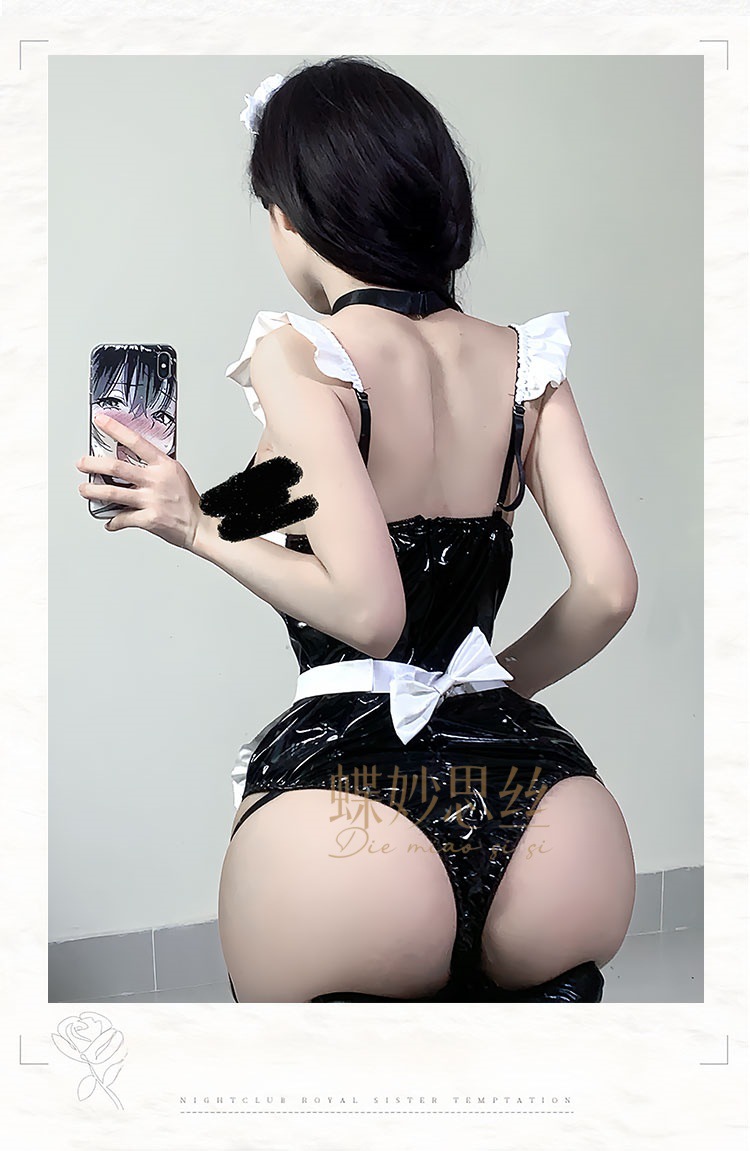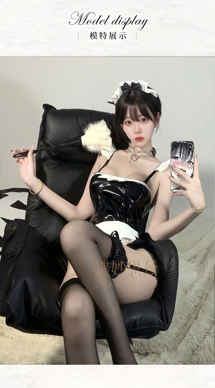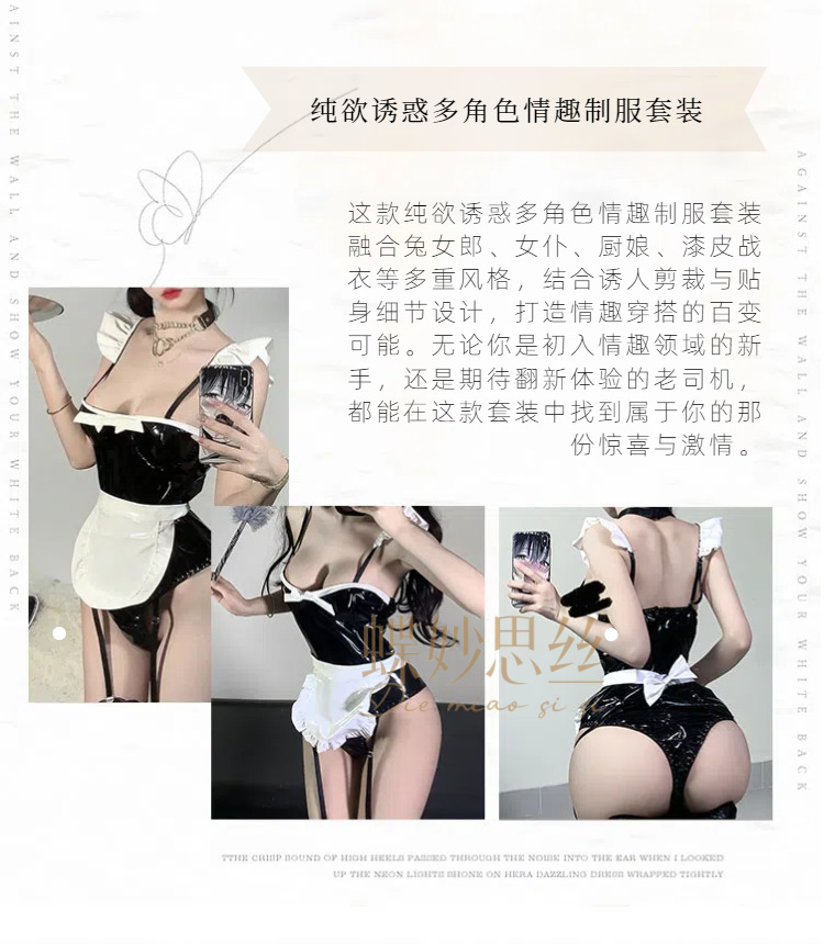 蝶妙思シルクメイドキャラクター、料理人、女中、漆皮ジャンプスーツ制服、エロティックA377、二次元ロールプレイ