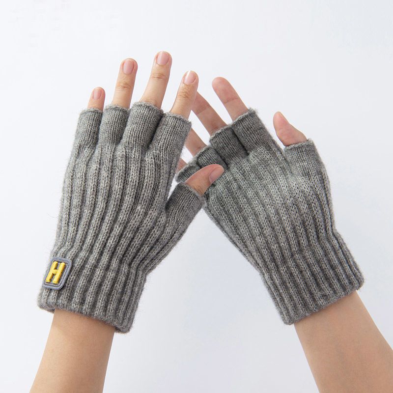 秋冬用ハーフフィンガーニット手袋、クロスボーダー、指なし、防寒、Hラベル付き、厚手で暖かい、工場製、タッチスクリーン対応、保温性抜群