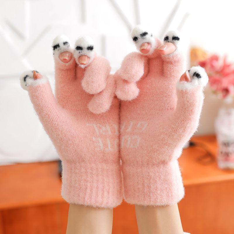 秋冬用手袋 女性用 ビーニーフィッシュニット 保温 防寒 ベルベット手袋 学生用 三本指露出 タッチスクリーン対応