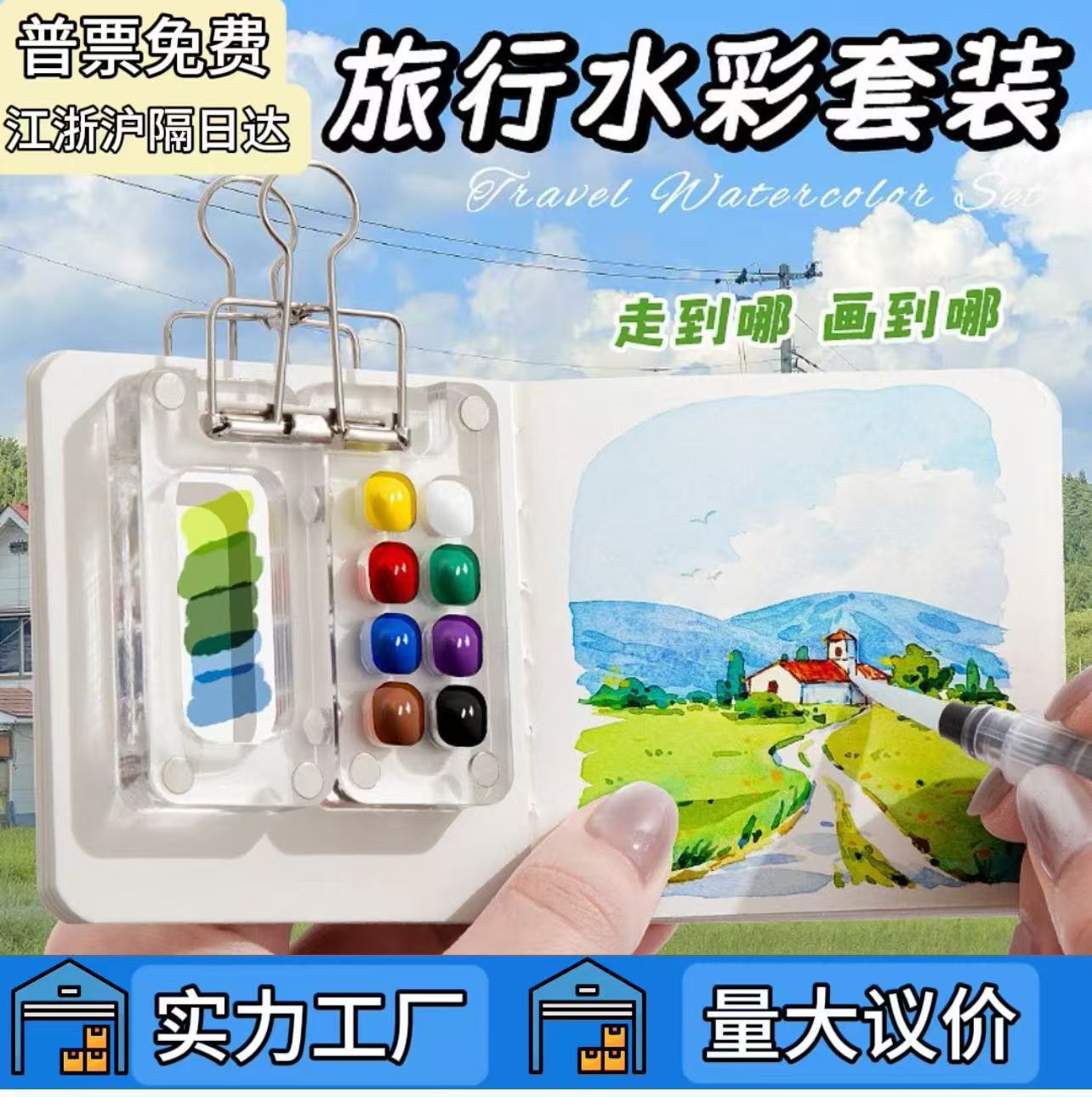 ミニ水彩絵の具胡桃木箱アクリル箱携帯手帳写生旅行絵本調色