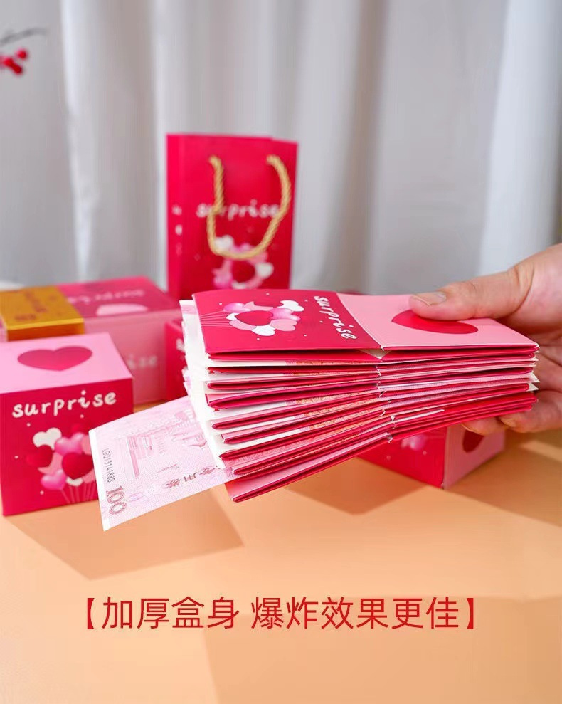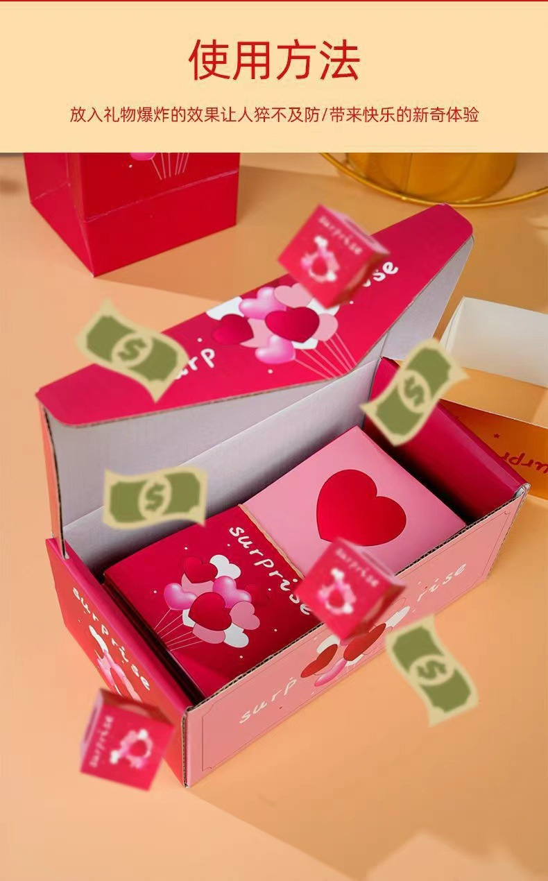 惊喜礼品盒爆炸钱独特的折叠弹跳礼品盒带五彩纸屑得现金礼品盒
