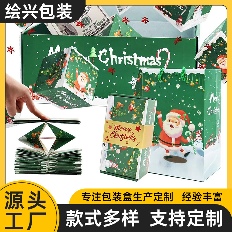 アマゾンクロスボーダー爆発クリスマスサプライズジャンプボックス誕生日クリエイティブプレゼントクリスマス折り畳みバウンスレッドバッグ礼箱