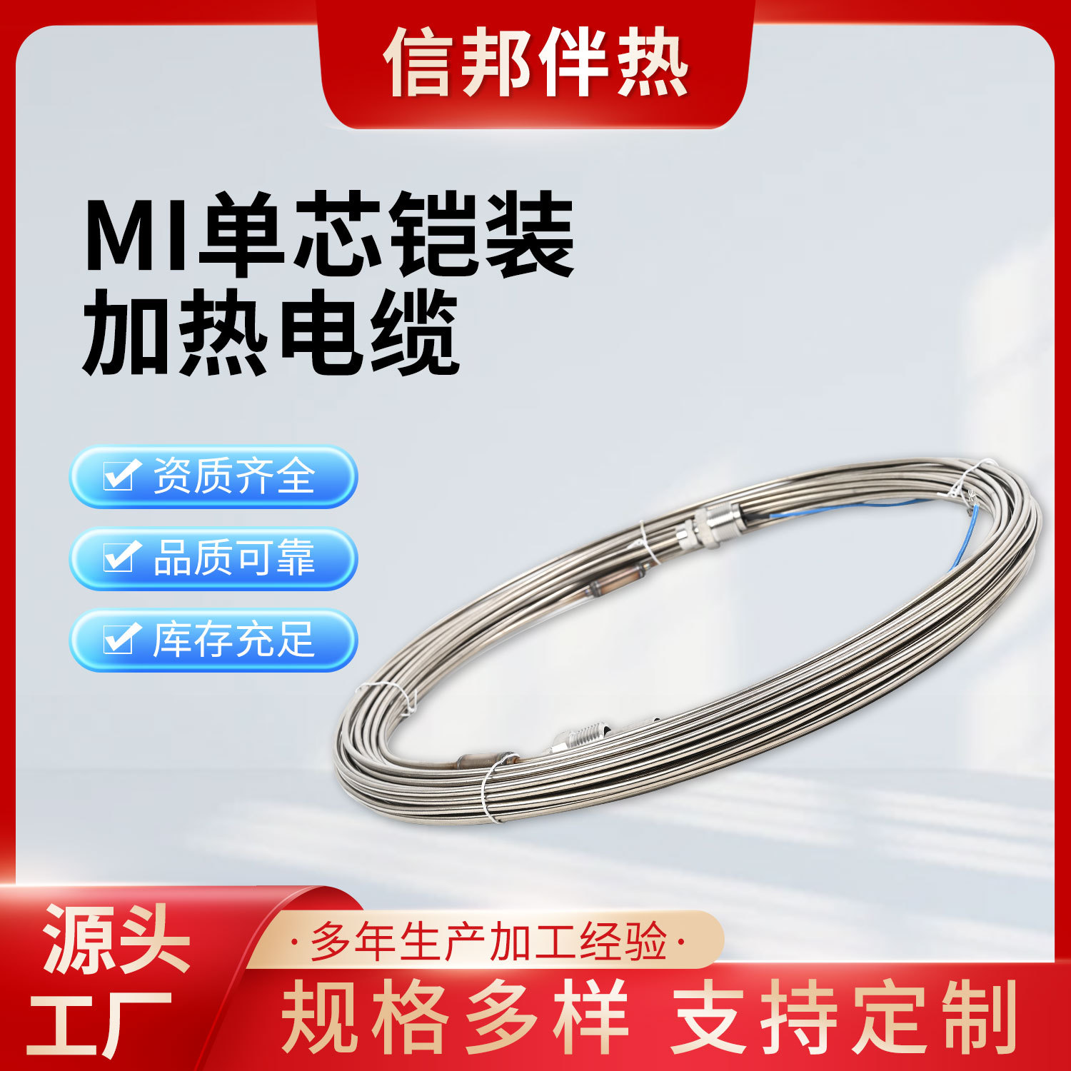 MI単芯装甲加熱ケーブル石油化学工業建築鉱物絶縁凍結防止雪自己制御温電伴熱帯