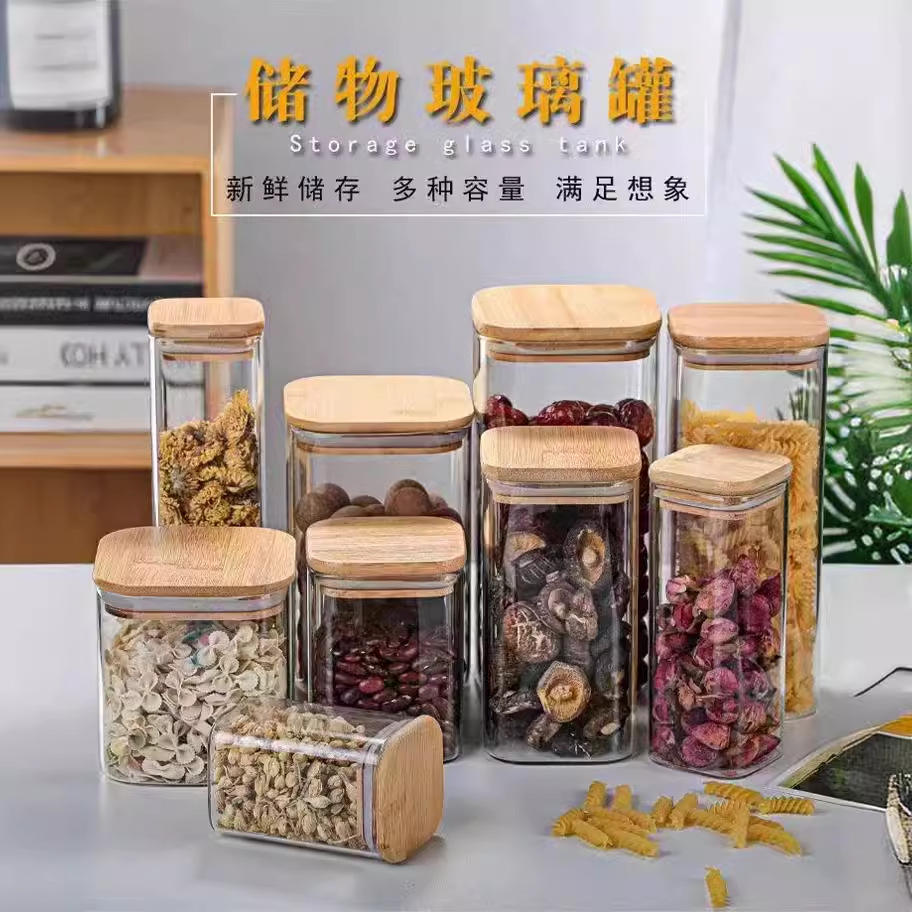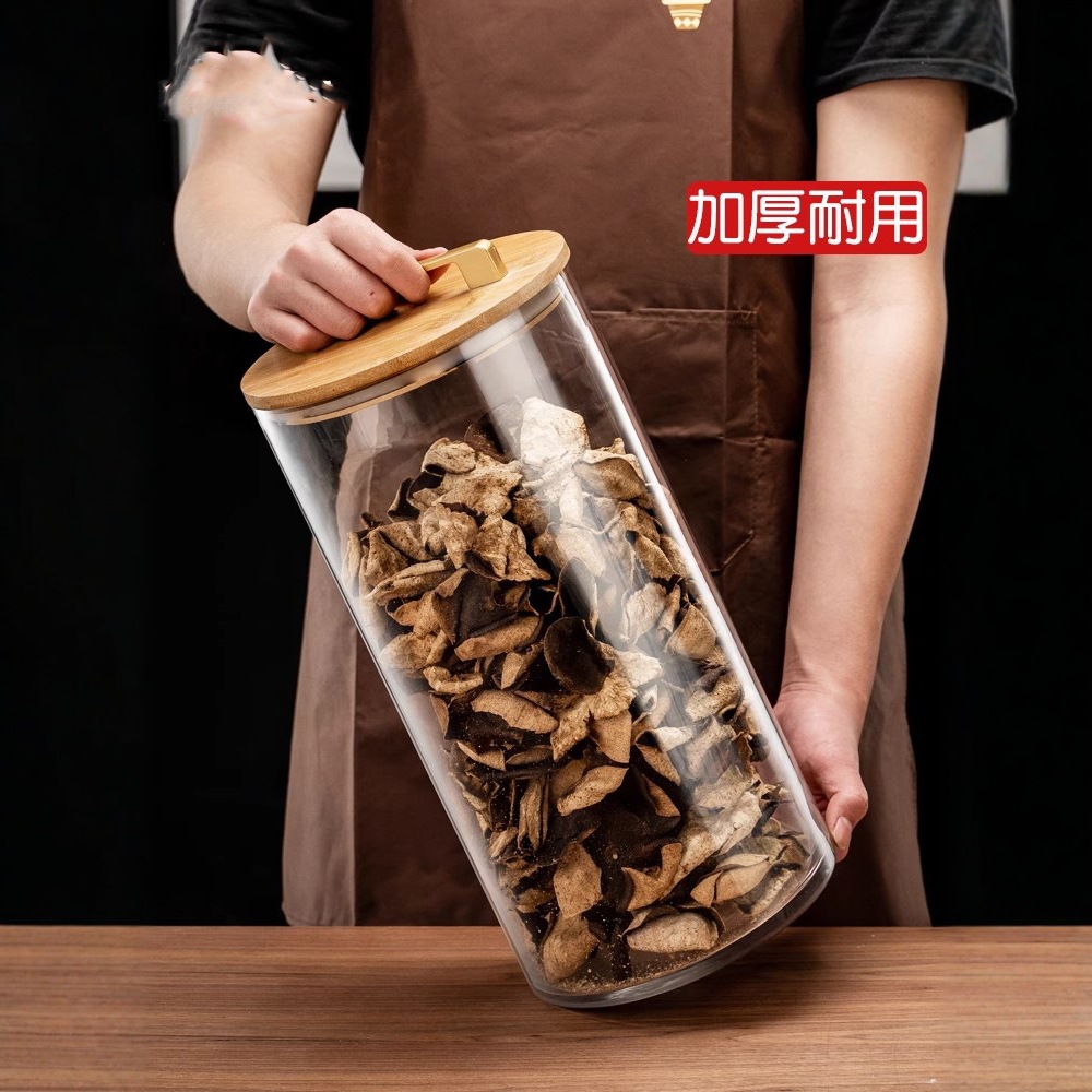 竹盖玻璃密封罐大容量玻璃茶叶储存罐密封罐家用玻璃储物罐收纳瓶