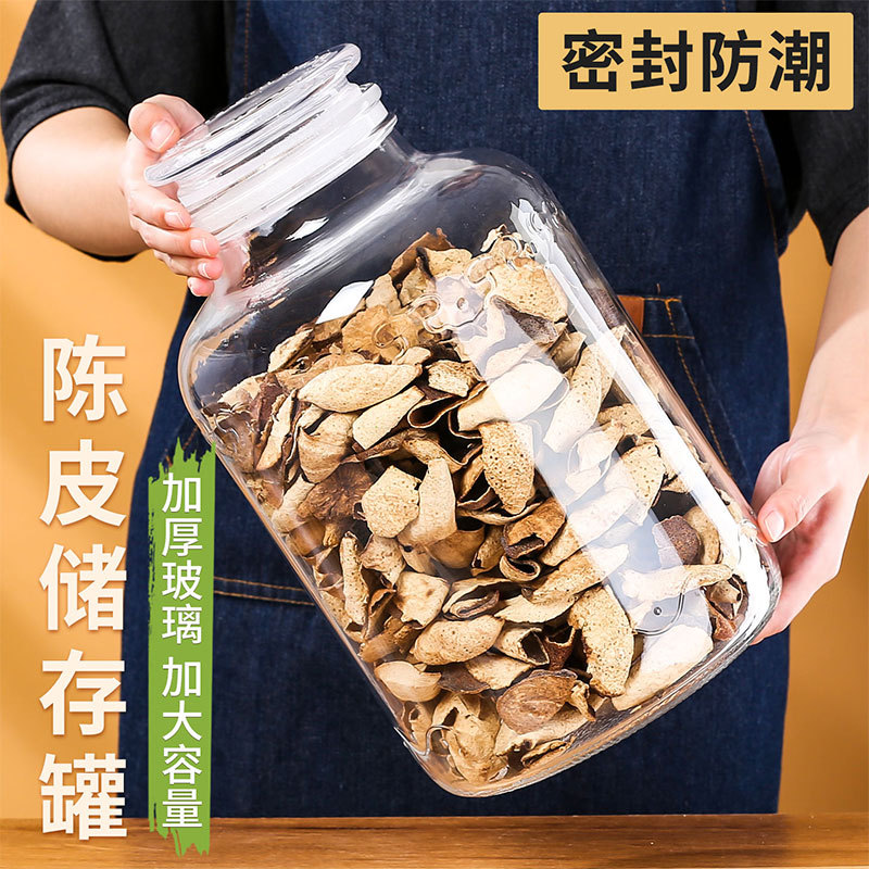大容量玻璃瓶带盖陈皮储存罐商用大号密封罐大口径茶叶干货展示瓶
