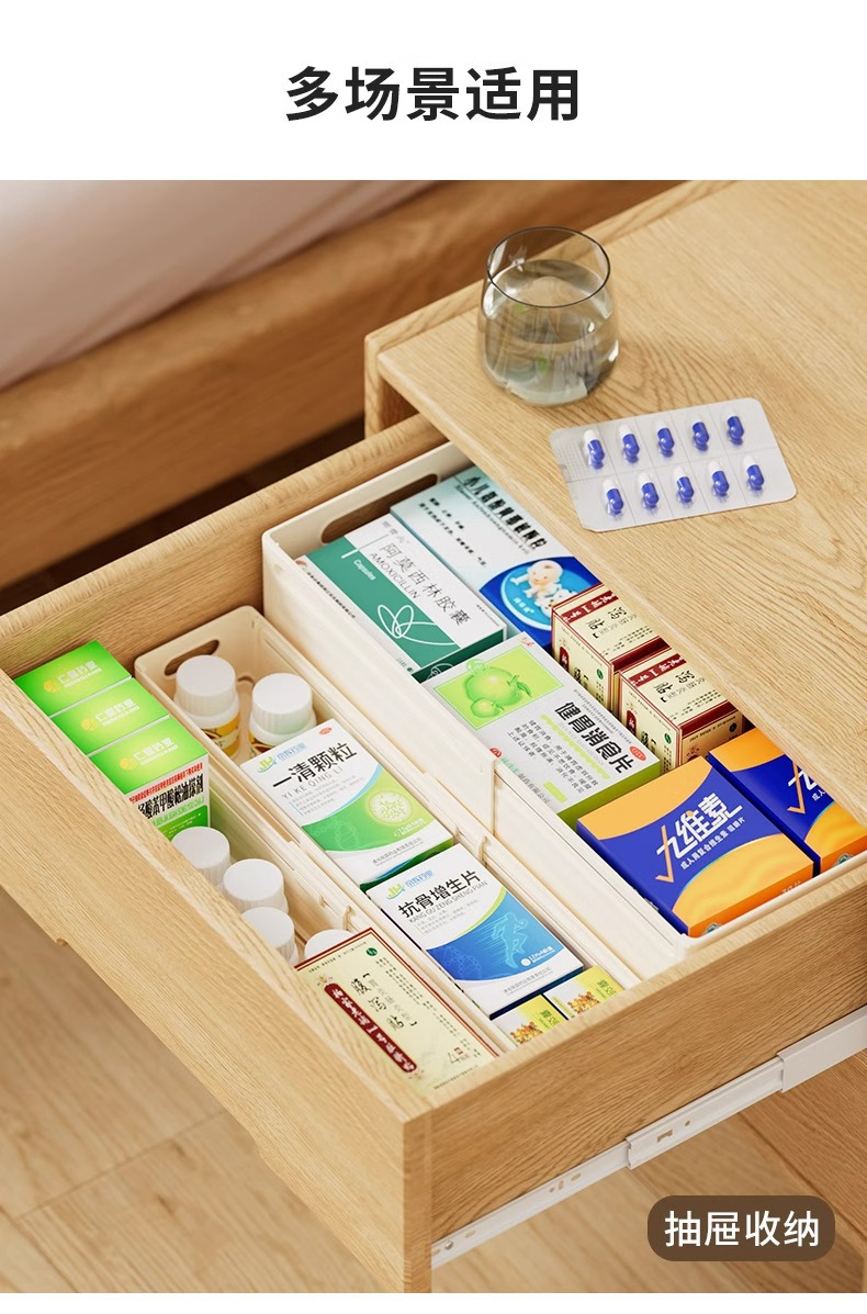 抽屉收纳盒可伸缩内置分隔板化妆口红整理盒桌面梳妆台透明储物盒