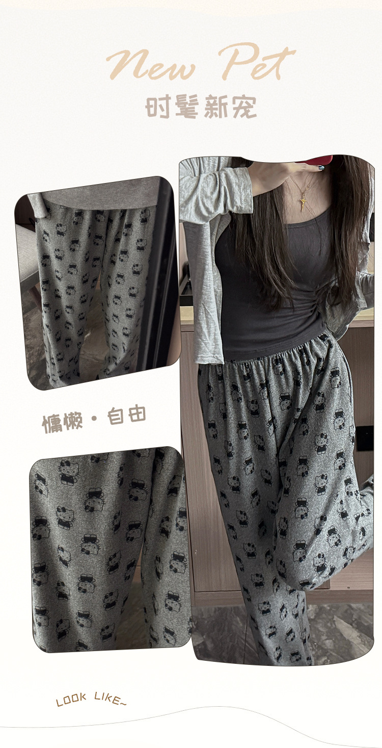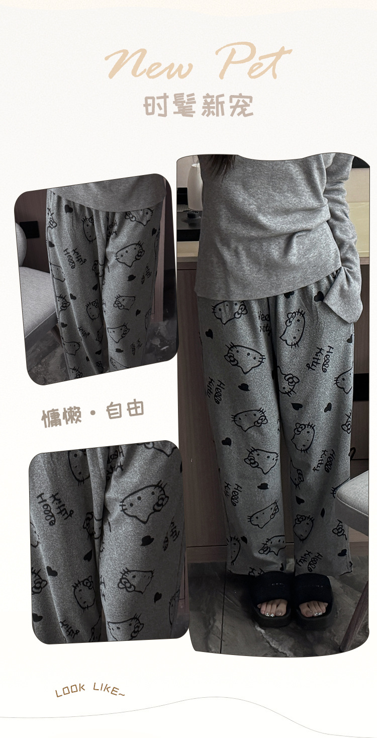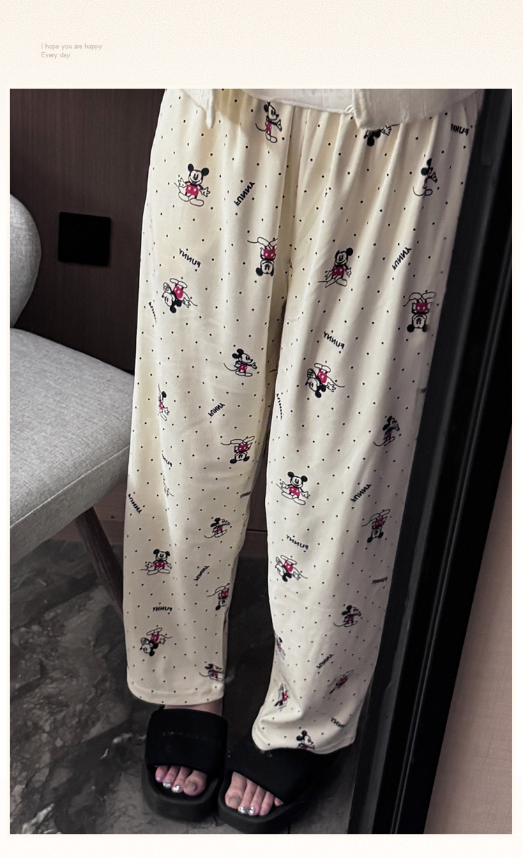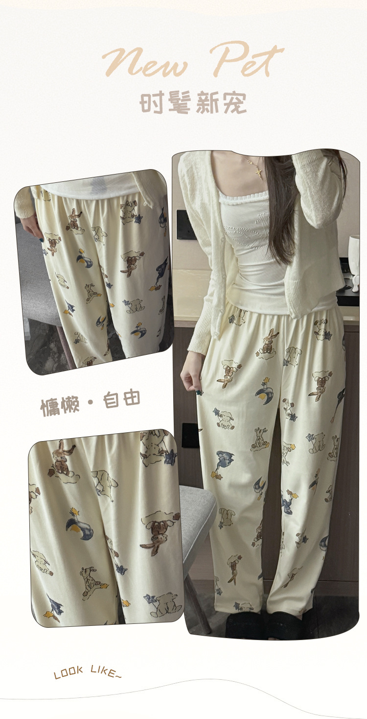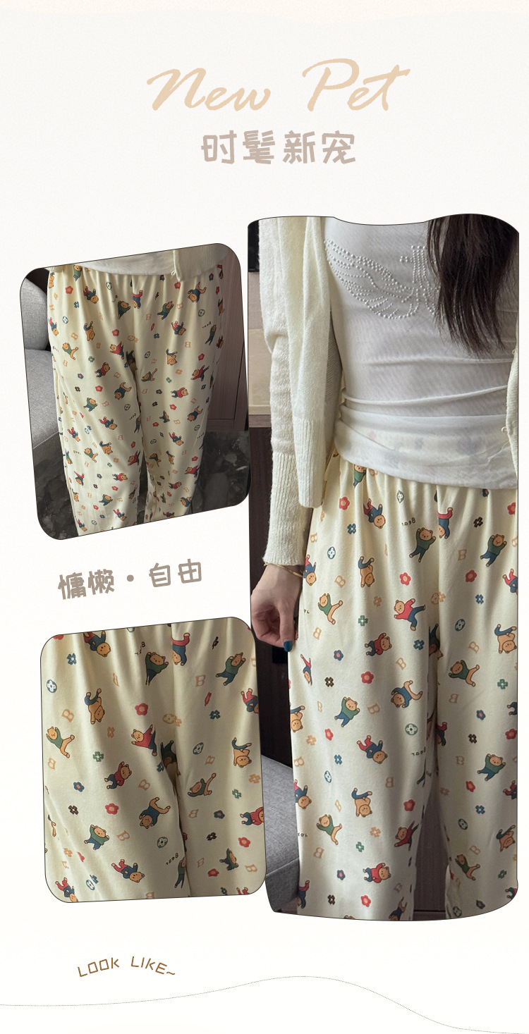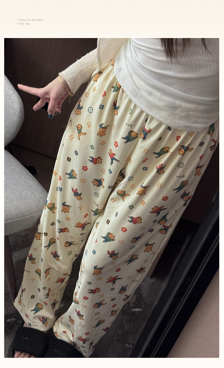 日本系ins寝ズボン女子秋冬徳絨漫画かわいいゆるいズボンパジャマ家のズボンは外に着ることができる