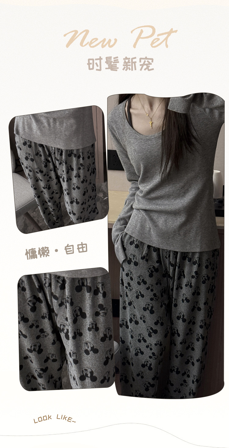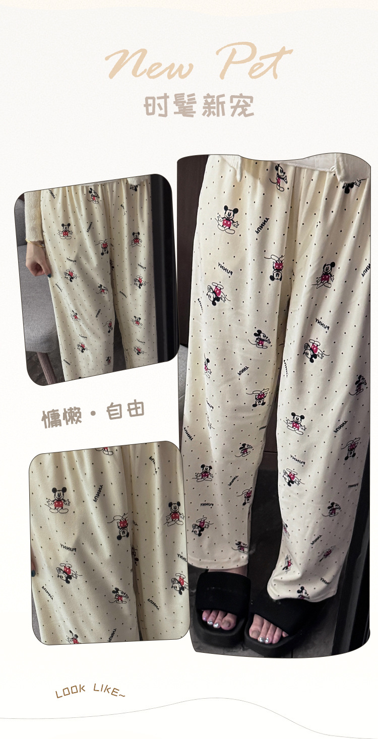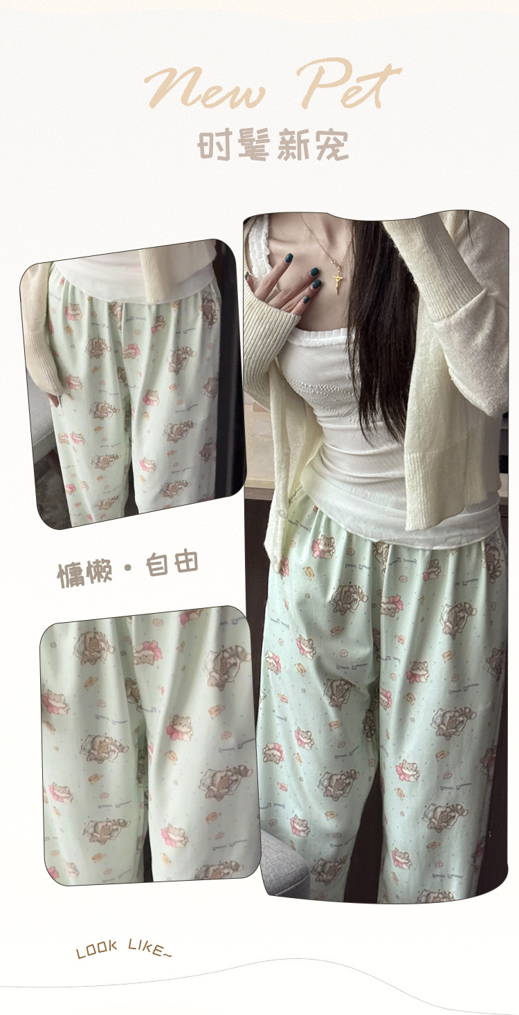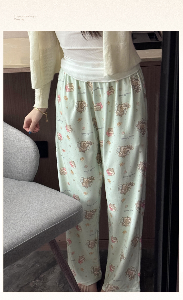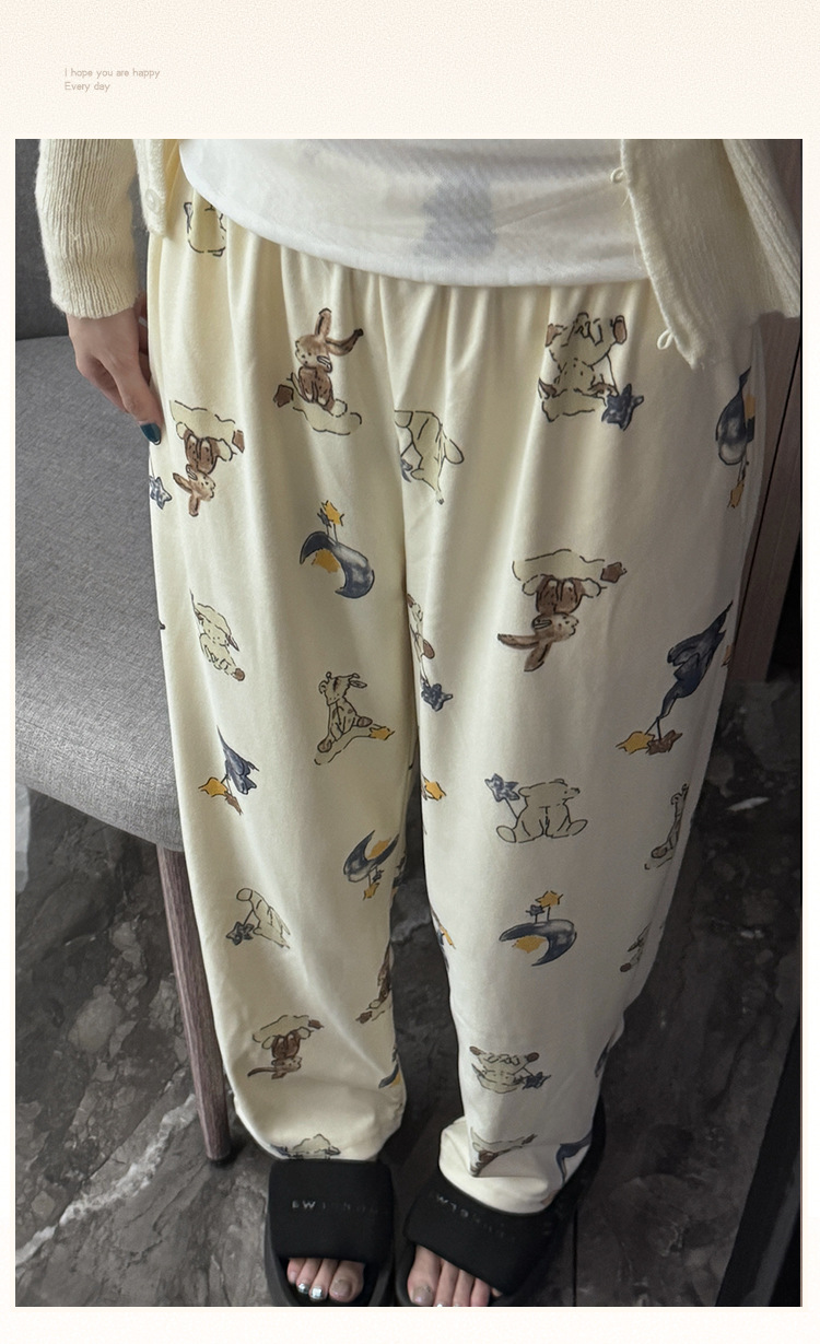 日本系ins寝ズボン女子秋冬徳絨漫画かわいいゆるいズボンパジャマ家のズボンは外に着ることができる