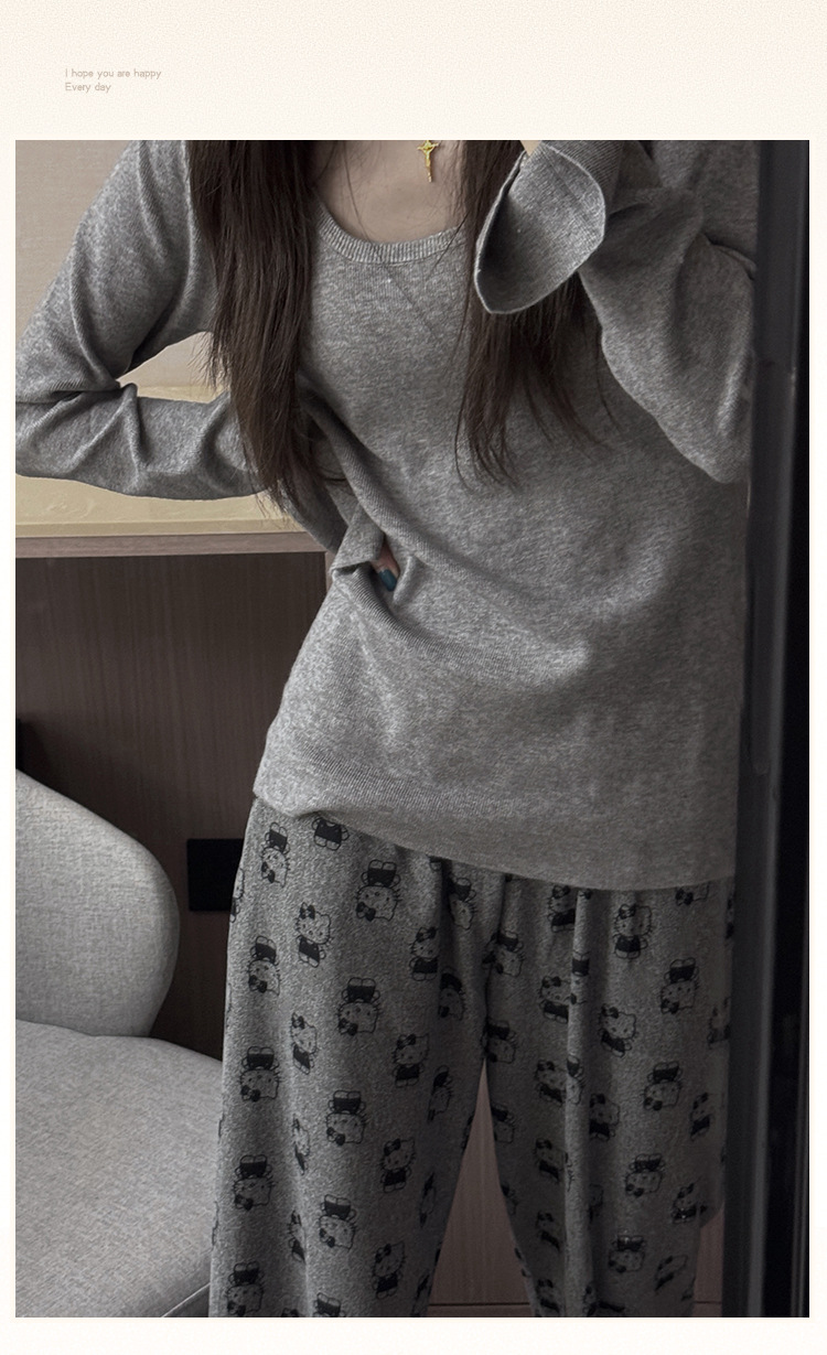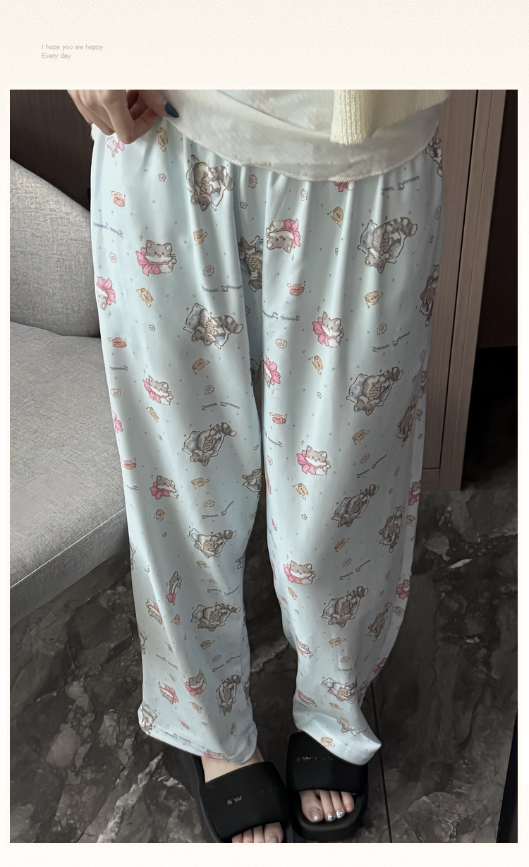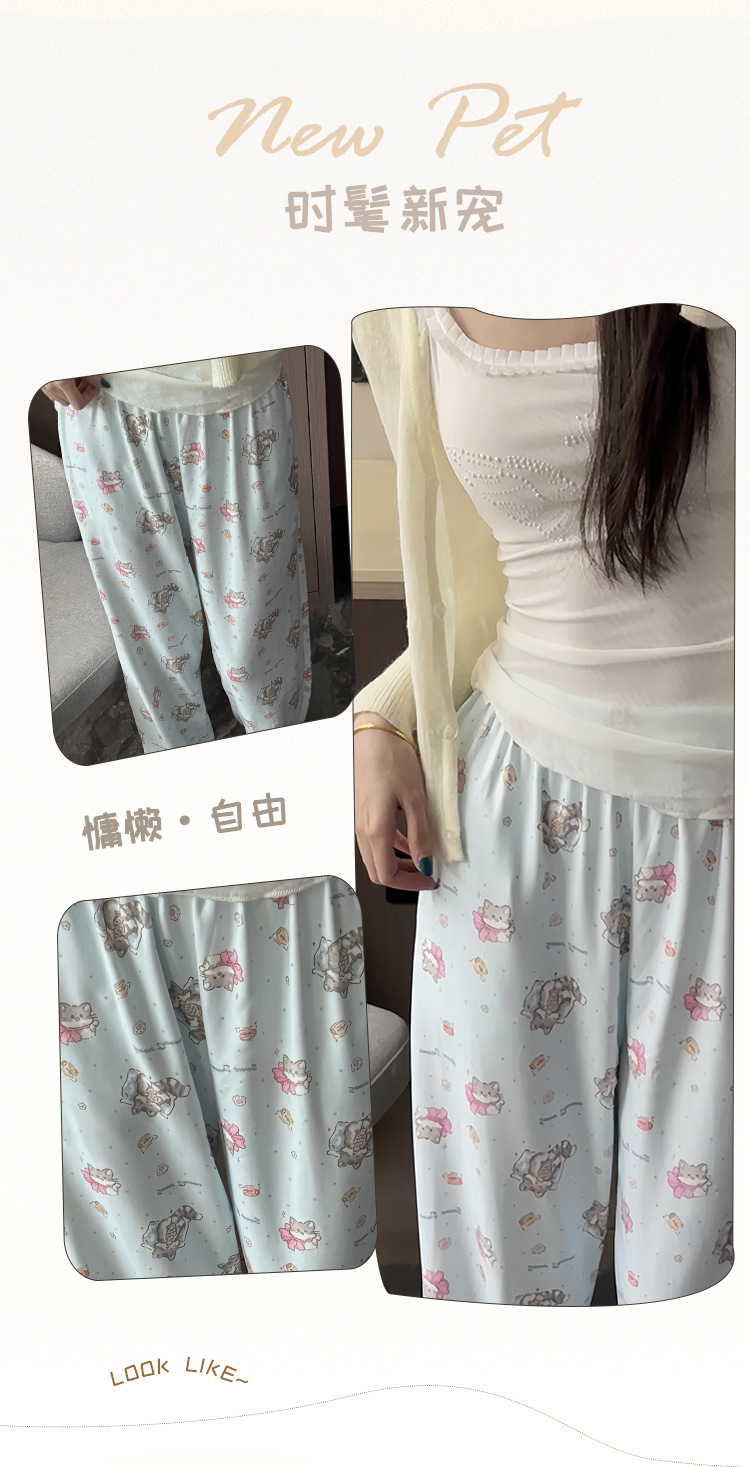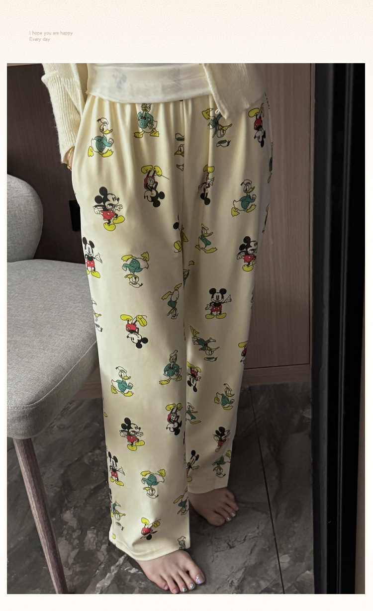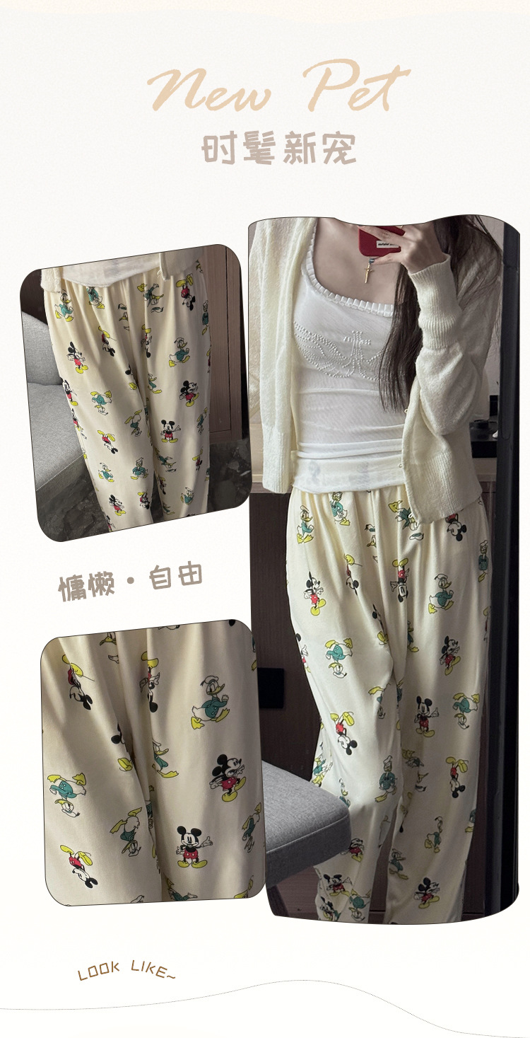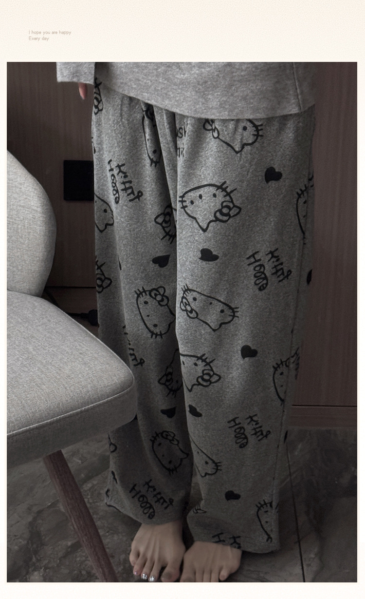 日本系ins寝ズボン女子秋冬徳絨漫画かわいいゆるいズボンパジャマ家のズボンは外に着ることができる