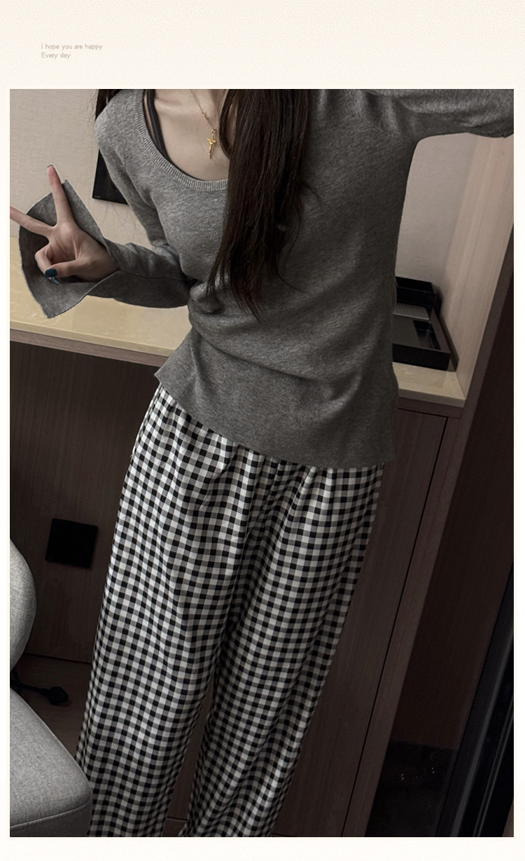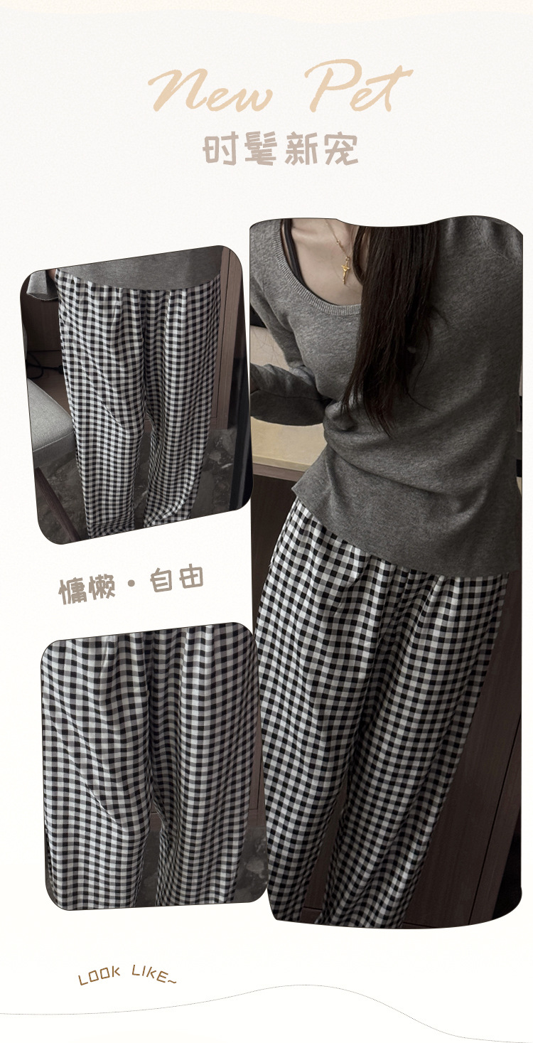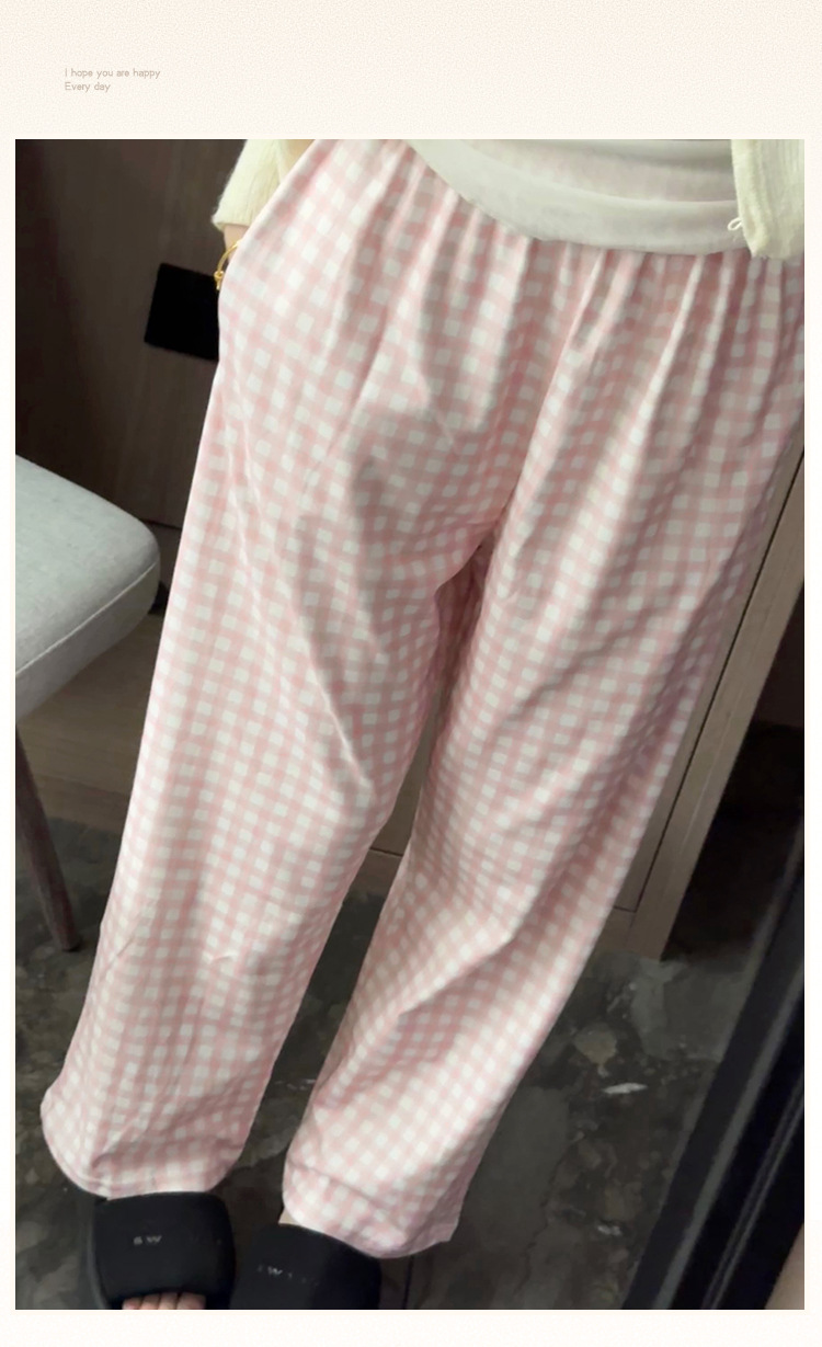 韓国版春秋長袖格子長ズボンパジャマ女性はシンプルで高級感のあるカジュアルな家庭服を着ることができる