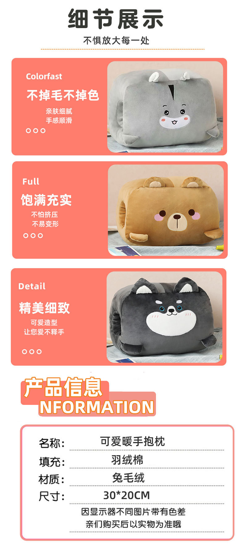 冬天卡通暖手睡觉抱枕插手玩偶手捂子毛绒玩具生日礼物办公室睡觉