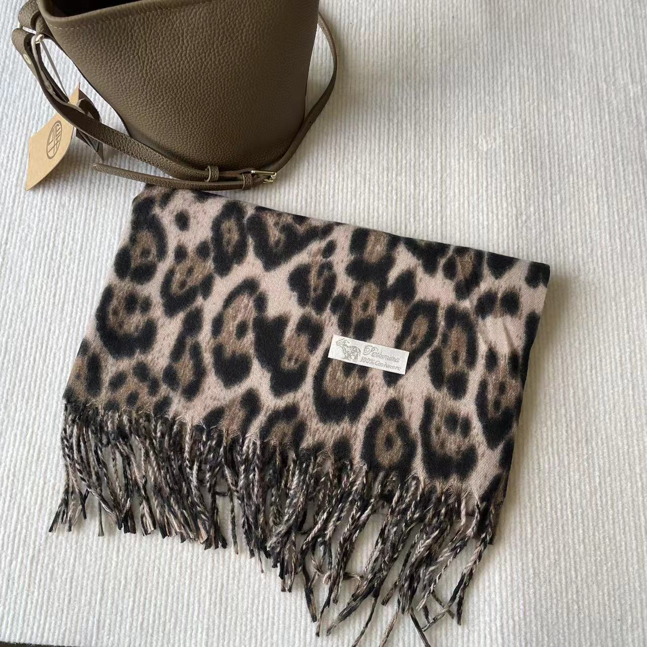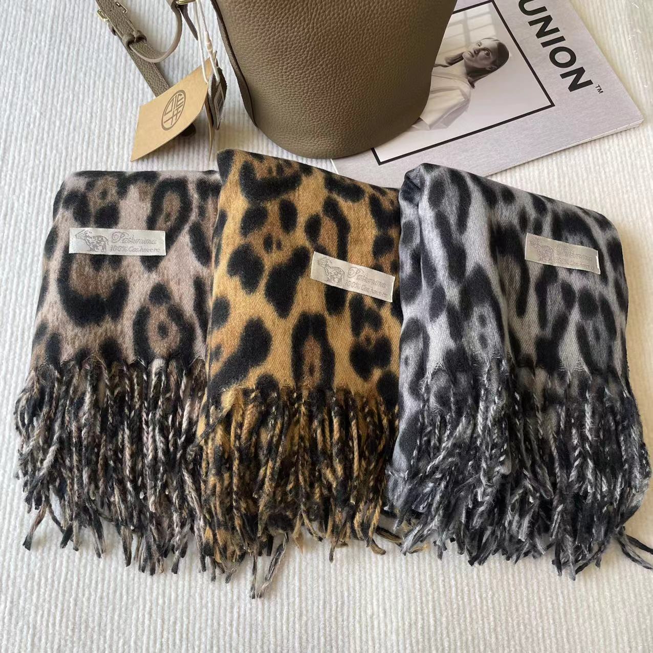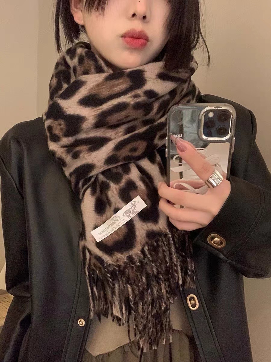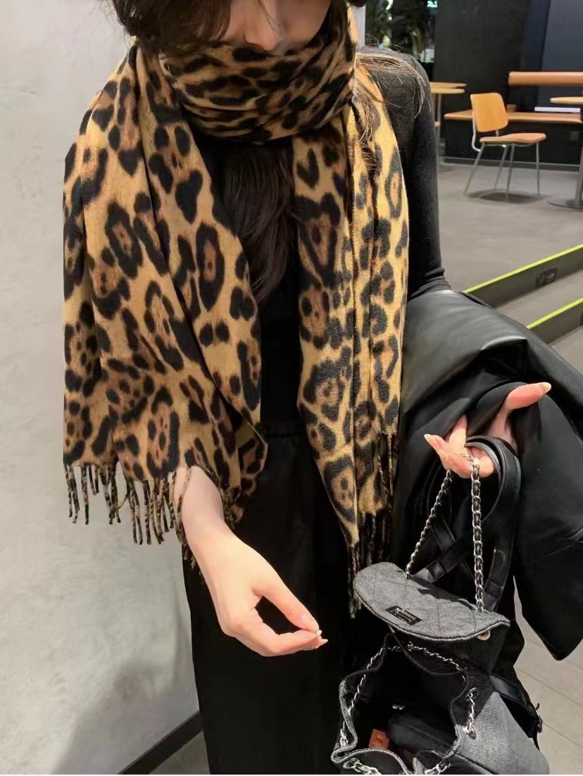 小衆デザインの甘いクールなレトロなヒョウ柄のフリンジスカーフの女性2024の新しい千年ギャル風秋冬の厚いストール