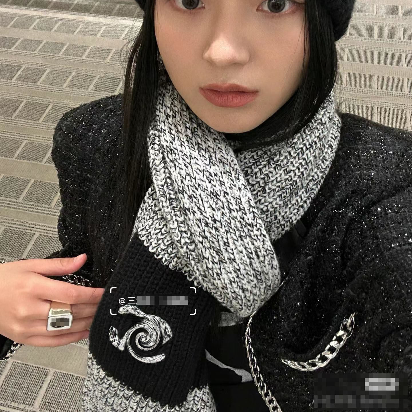 5号小香围巾女羊绒针织羊毛围巾秋冬加厚双C毛线围脖披肩保暖双面
